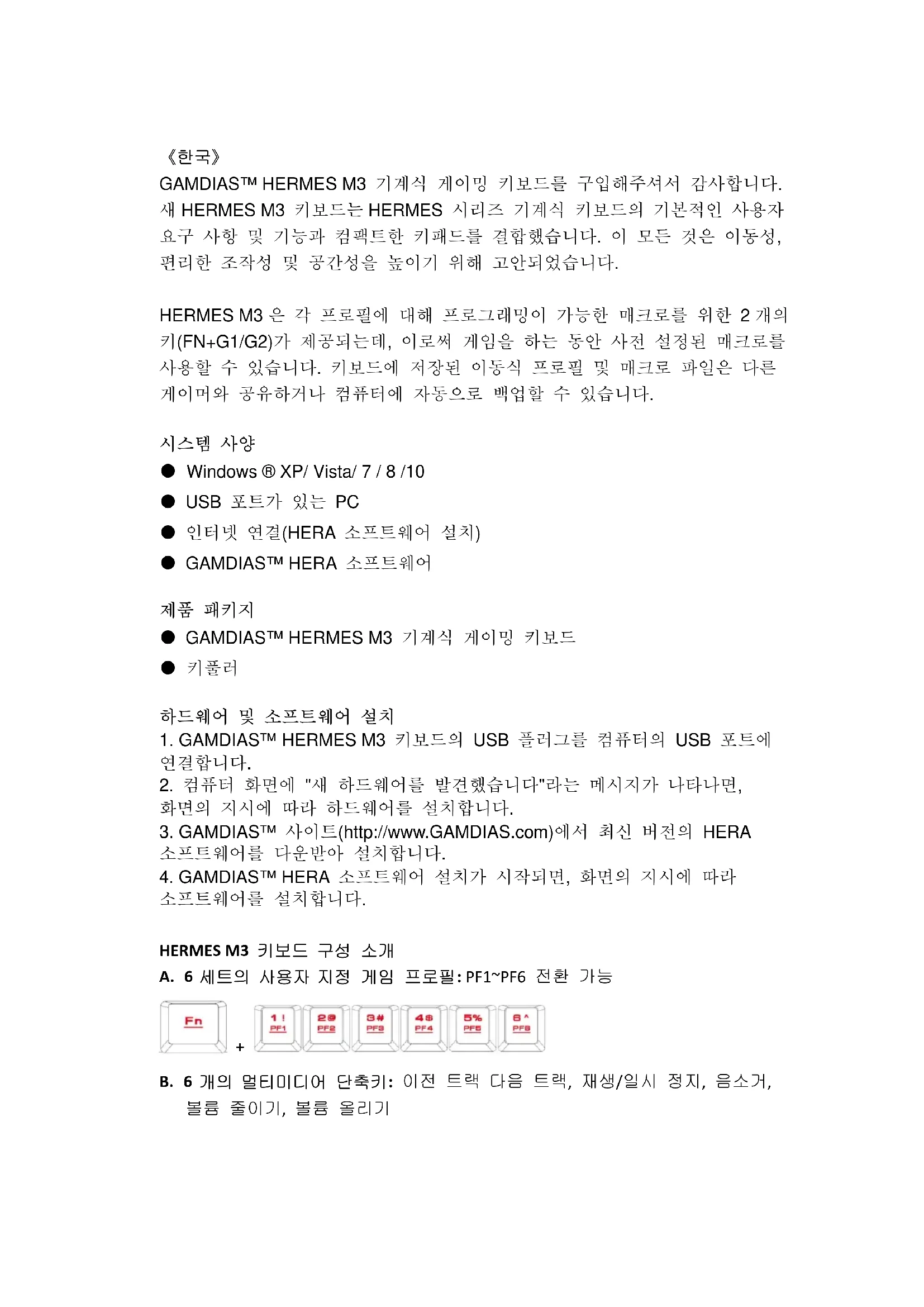 GAMDIAS™ HERMES M3 기계식 게이밍 키보드를 구입해주셔서 감사합니다.