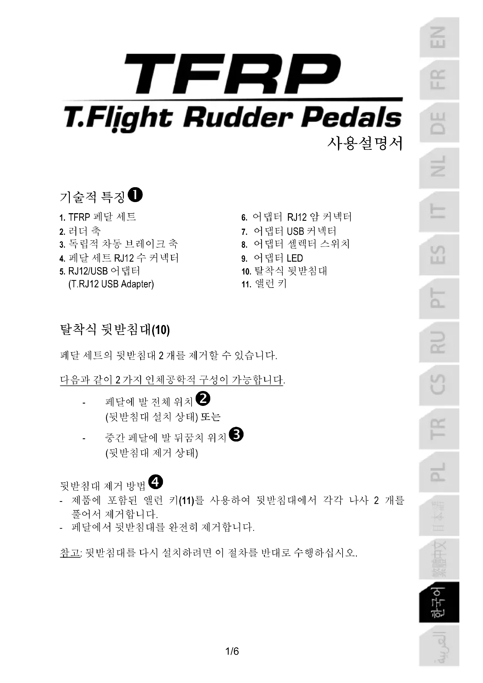 사용 설명서 TFRP TFlight Rudder Pedals THRUSTMASTER
