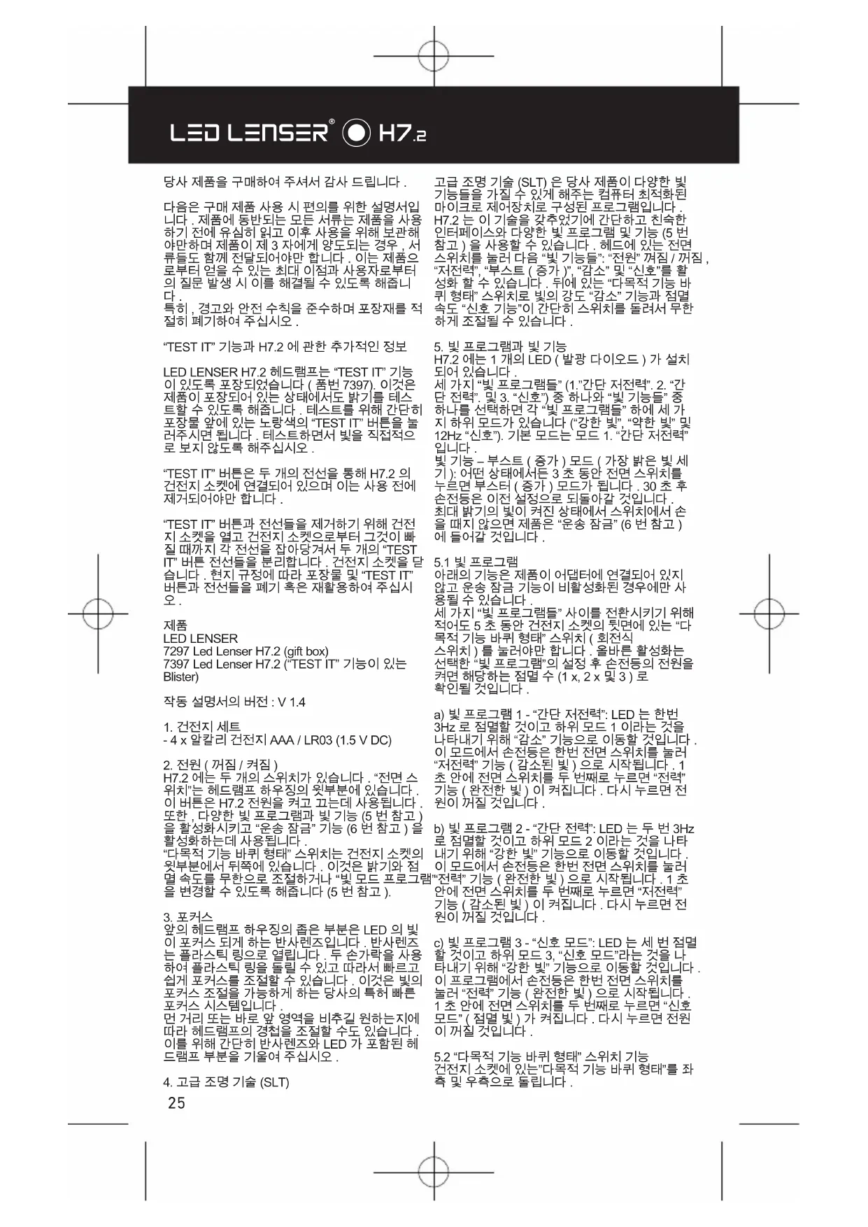 사용 설명서 H7.2 Ledlenser