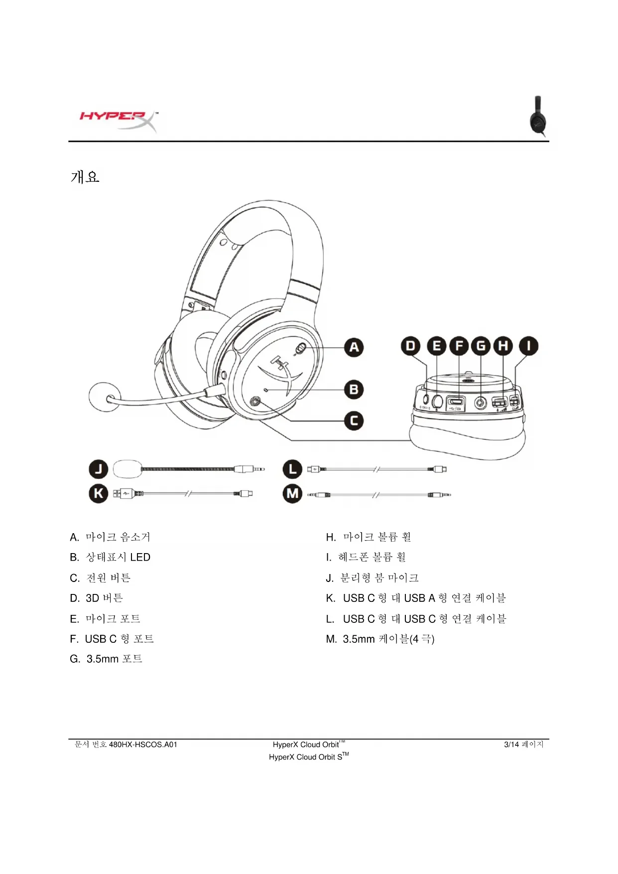 전원 버튼문서 번호 480HX-HSCOS.A01 HyperX Cloud Orbit