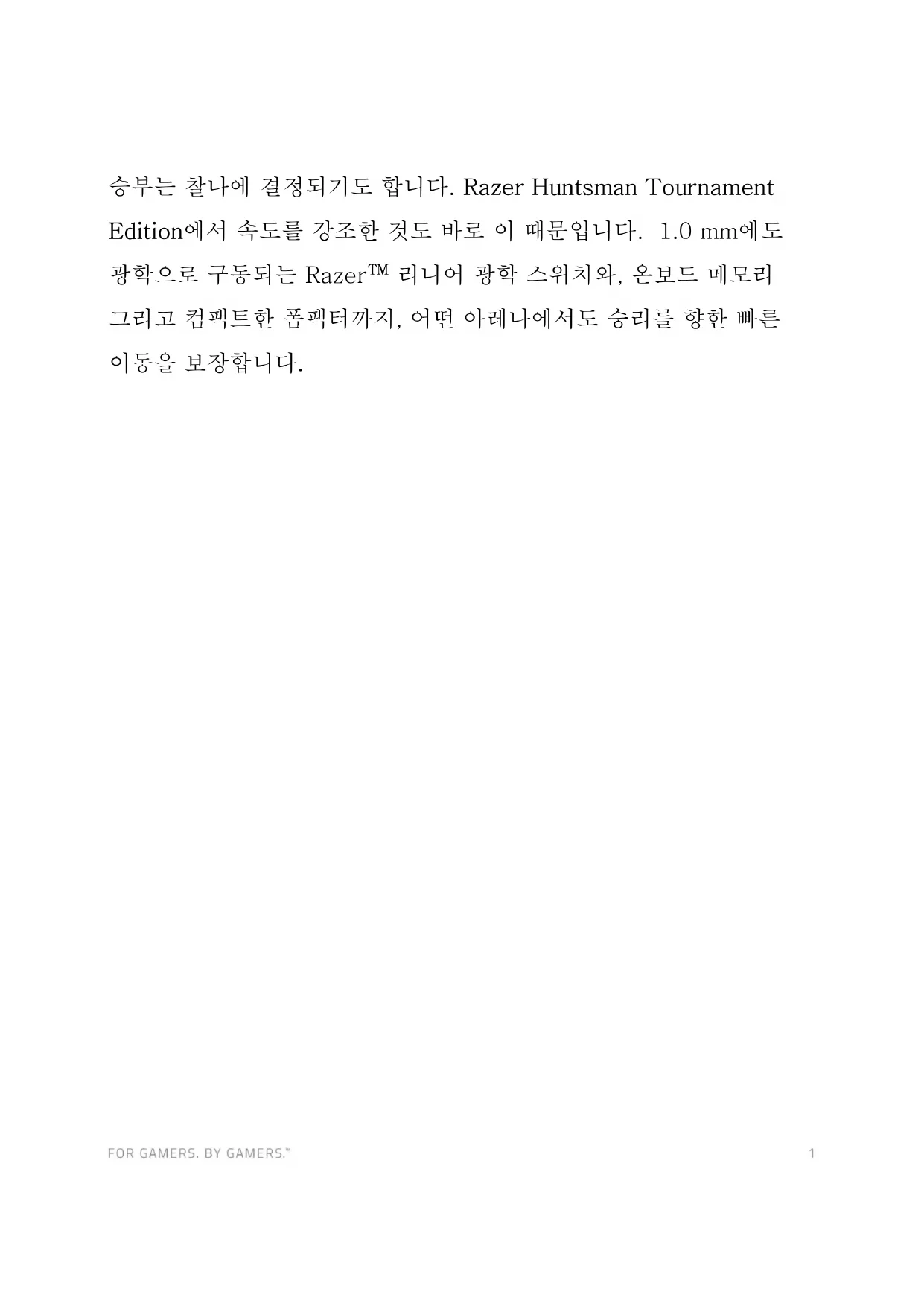 - 더욱 빠르고, 응답성 좋은 키 입력을 보장하는 Razer™ 리니어 광학 스위치