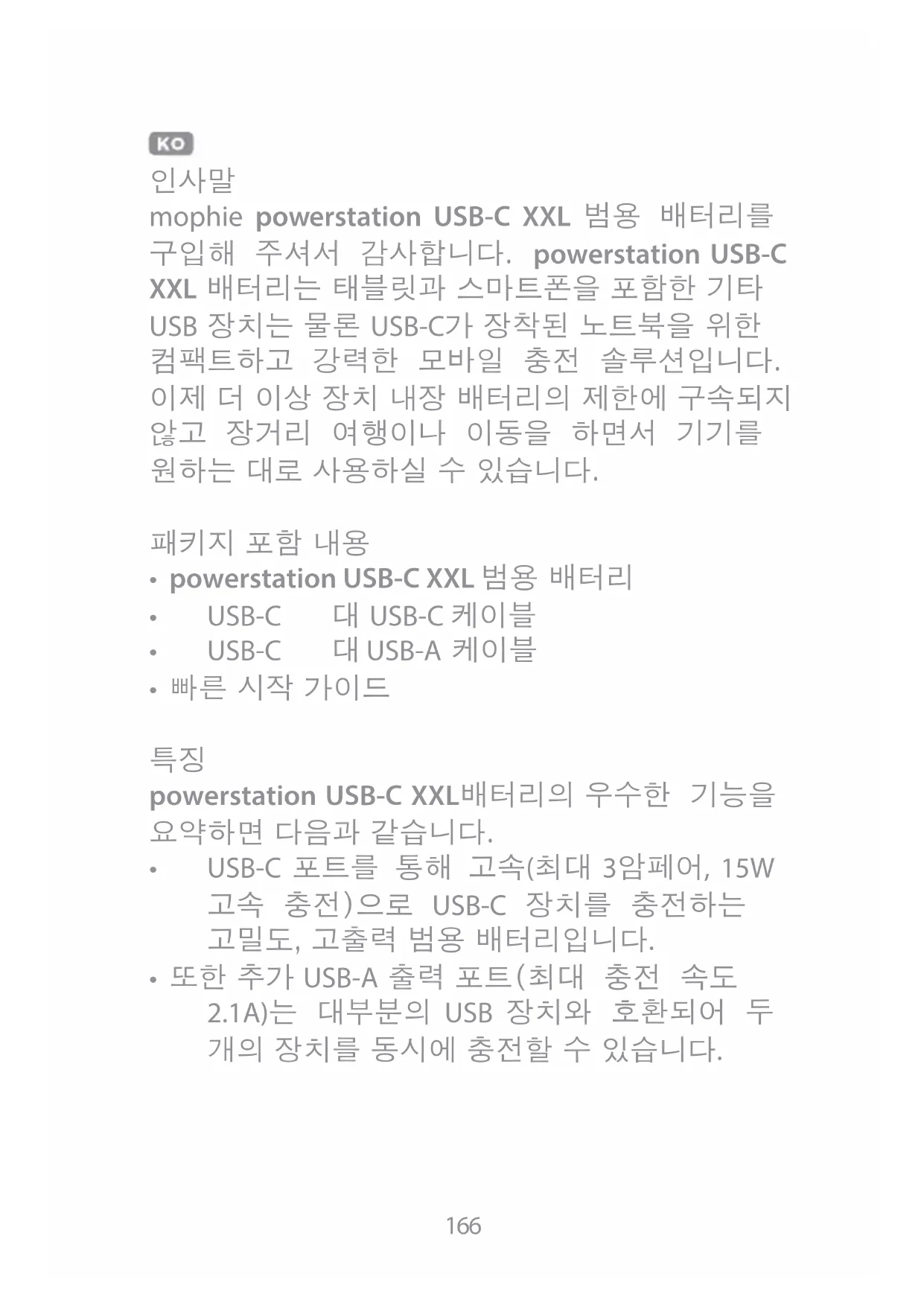 mophie powerstation USB-C XXL 범용 배터리를 구입해 주셔서 감사합니다. powerstation USB-C XXL 배터리는 태블릿과 스마트폰을 포함한 기타 USB 장치는 물론 USB-C가 장착된 노트북을 위한 컴팩트하고 강력한 모바일 충전 솔루션입니다. 이제 더 이상 장치 내장 배터리의 제한에 구속되지 않고 장거리 여행이나 이동을 하면서 기기를 원하는 대로 사용하실 수 있습니다.