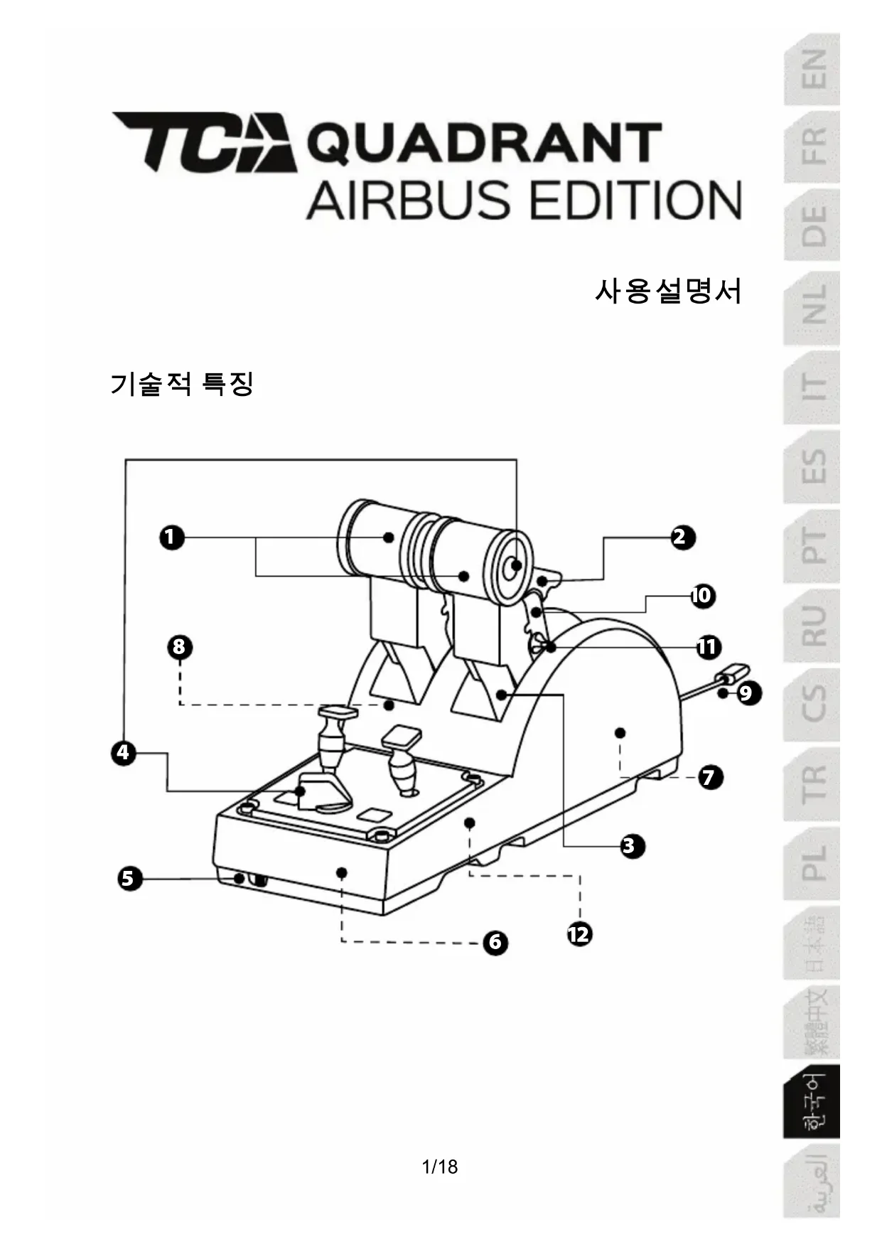 TCA Quadrant Airbus Edition - 컨트롤러 THRUSTMASTER - 무료 사용 설명서
