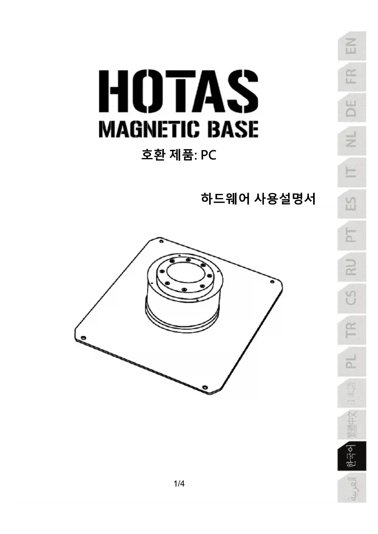 호환 제품: PC 하드웨어 사용설명서2/4 Thrustmaster 에드온 그립용 HOTAS 마그네틱 베이스