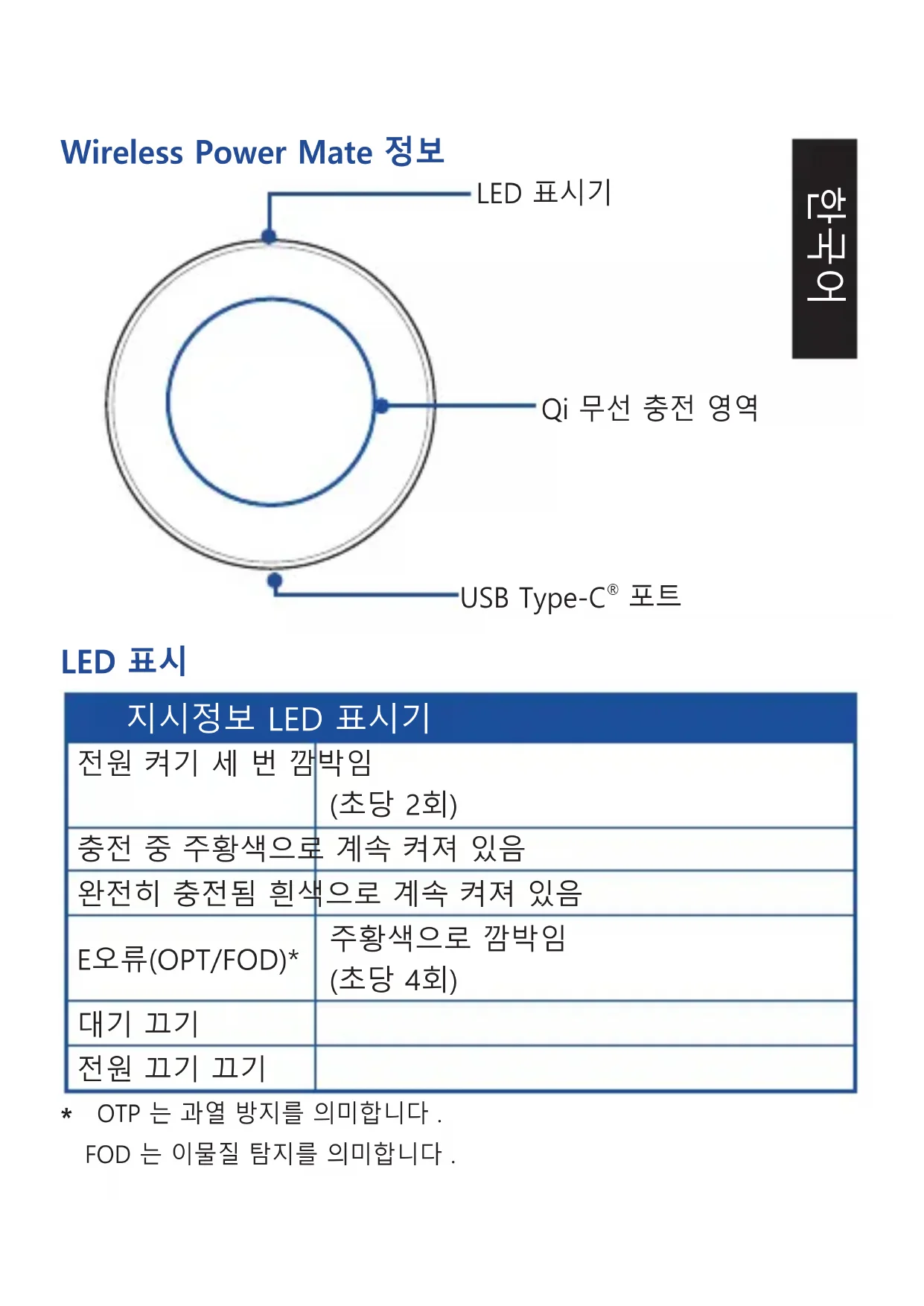 OTP 는 과열 방지를 의미합니다 . FOD 는 이물질 탐지를 의미합니다 . 한국어무선 충전 표준 Qi 1.2.4