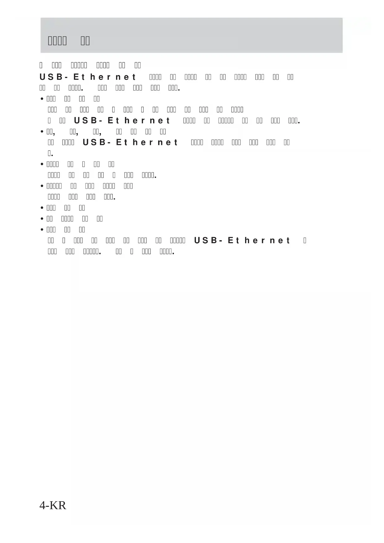 - 본 USB-Ethernet 어댑터는 지정 네트워크나 전화회선 이외에는 접속하지 마