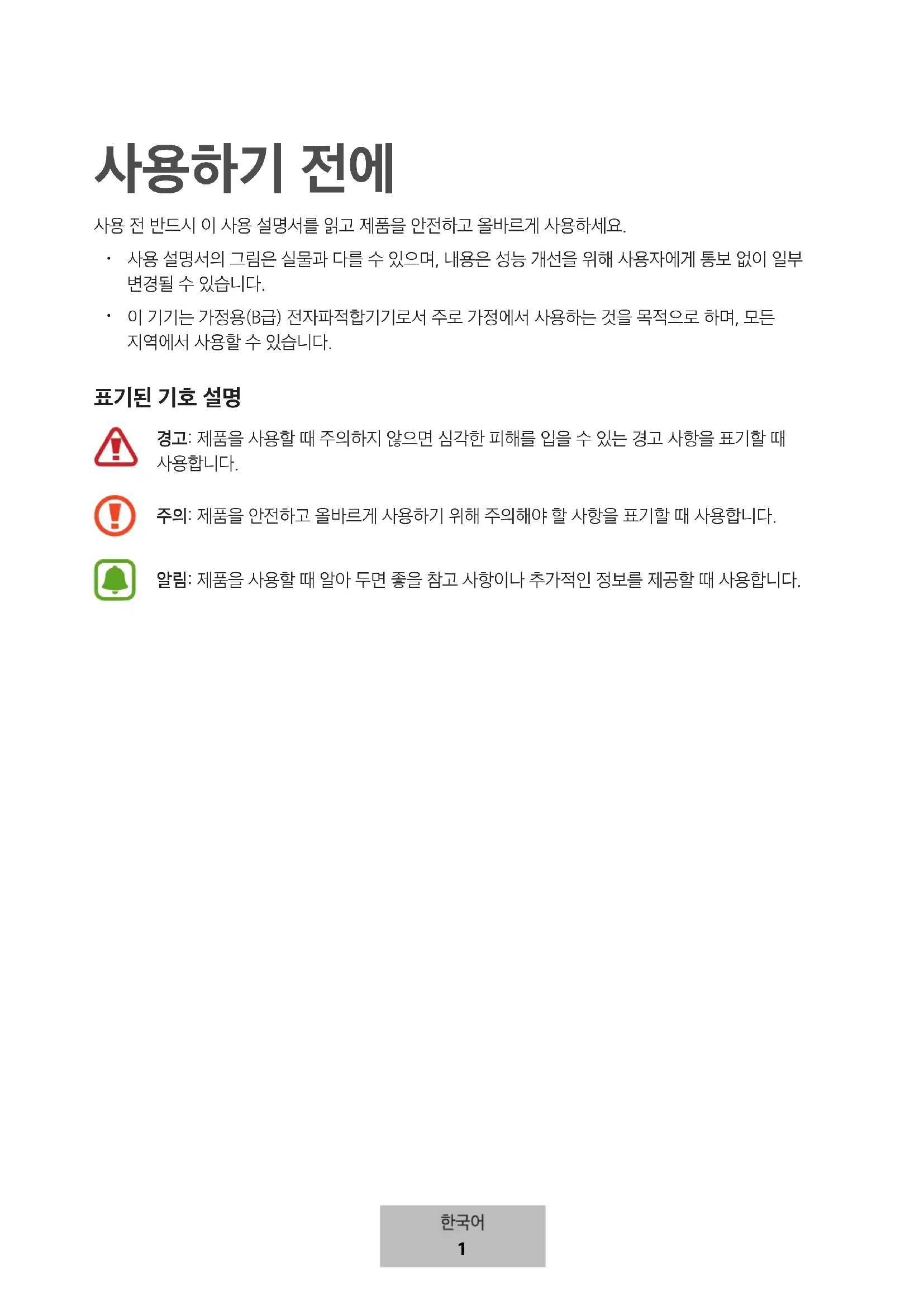 사용 전 반드시 이 사용 설명서를 읽고 제품을 안전하고 올바르게 사용하세요.