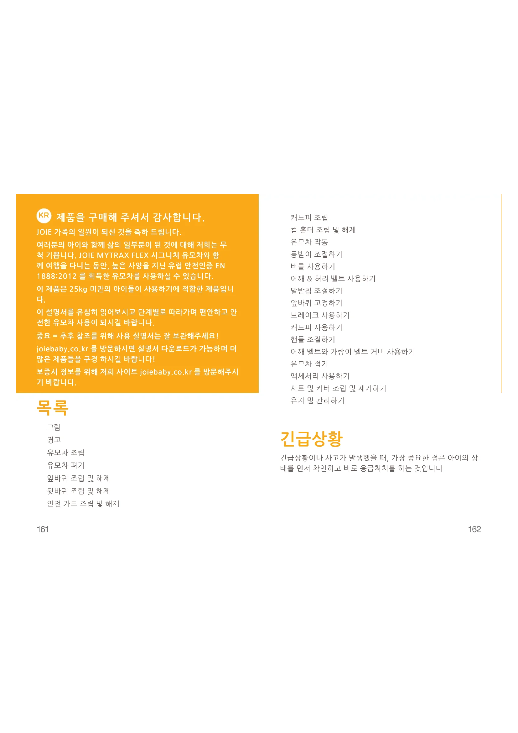 이 설명서를 유심히 읽어보시고 단계별로 따라가며 편안하고 안 전한 유모차 사용이 되시길 바랍니다. 중요 = 추후 참조를 위해 사용 설명서는 잘 보관해주세요! joiebaby.co.kr 를 방문하시면 설명서 다운로드가 가능하며 더 많은 제품들을 구경 하시길 바랍니다! 보증서 정보를 위해 저희 사이트 joiebaby.co.kr 를 방문해주시