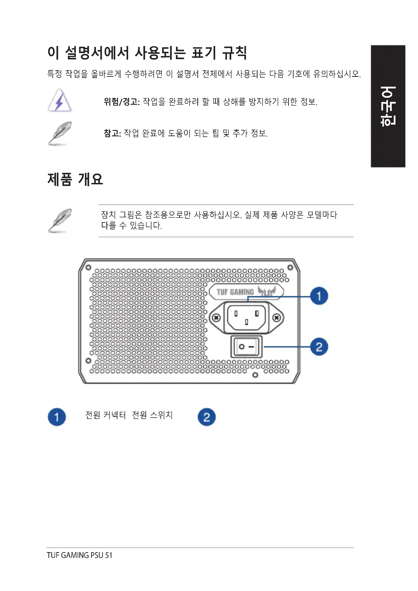 전원 커넥터 전원 스위치TUF GAMING PSU52