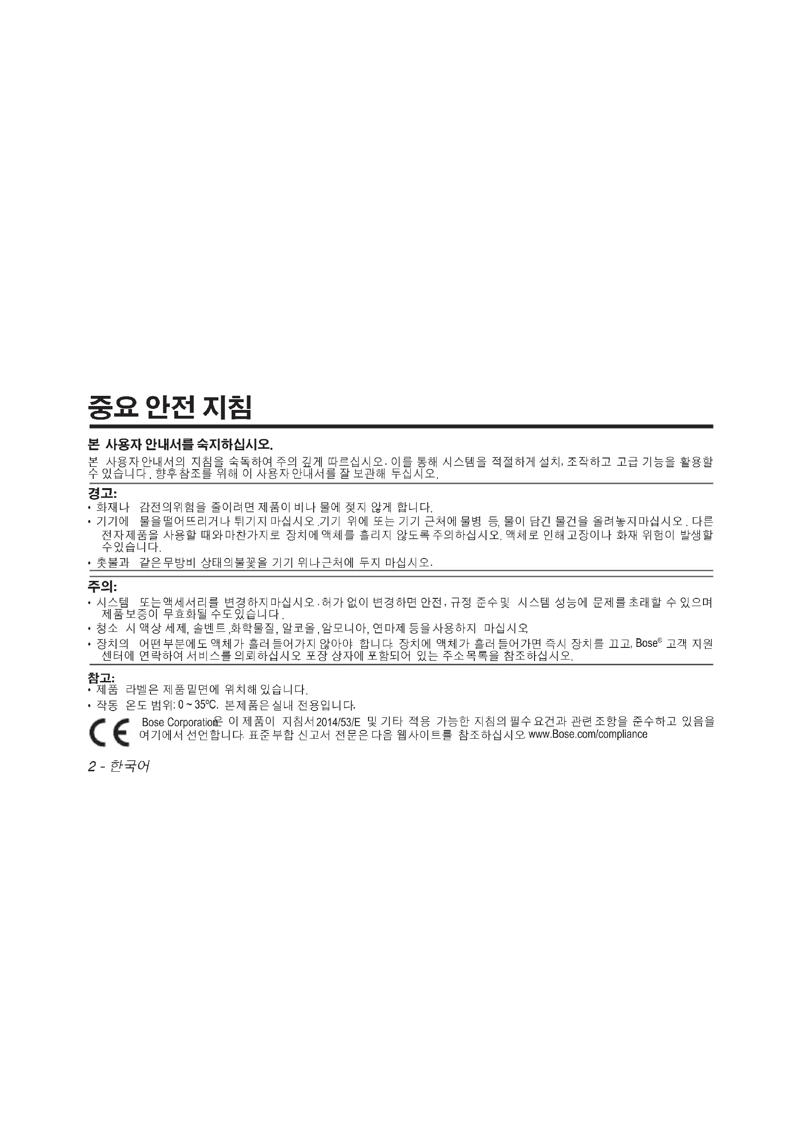 . www.Bose.com/compliance 중요 안전 지침한국어 - 3 FCC