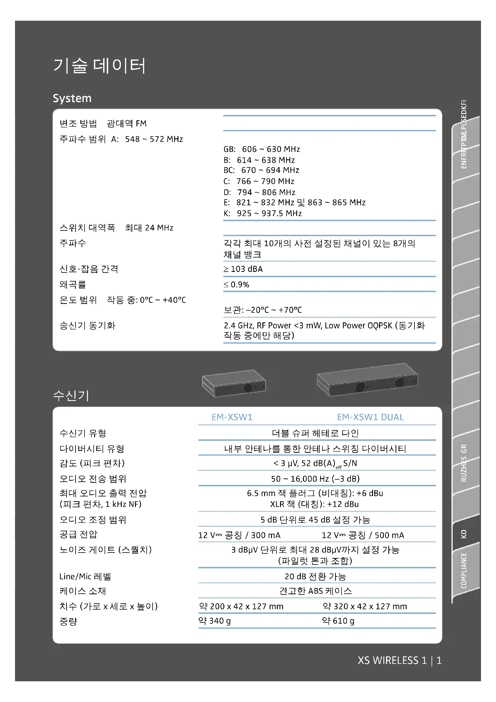 약 340 g 약 610 g 수신기2 | XS WIRELESS 1