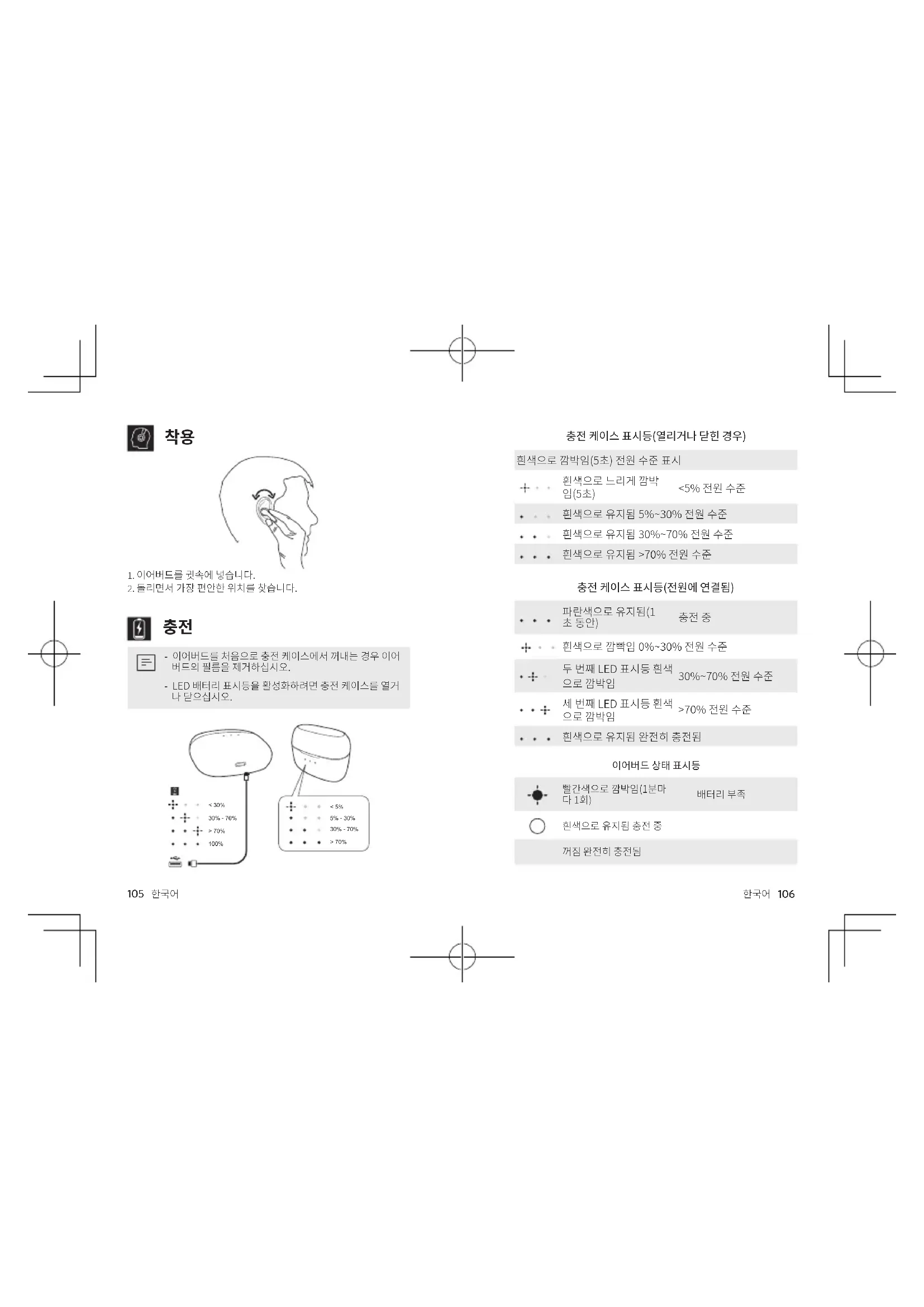 흰색으로 유지됨 충전 중 꺼짐 완전히 충전됨107 한국어