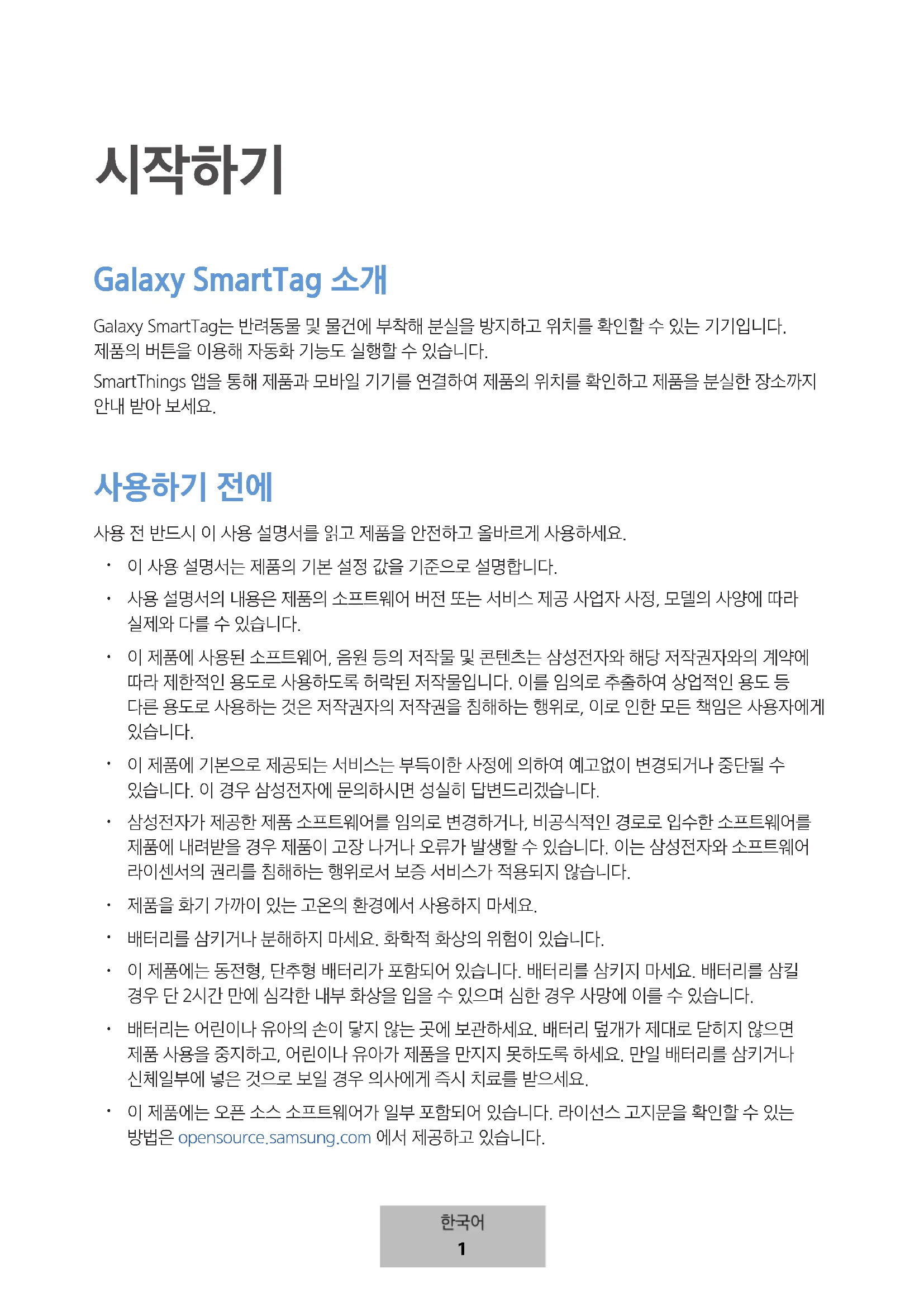기기 매뉴얼을 무료로 찾기 Galaxy SmartTag SAMSUNG PDF 형식.