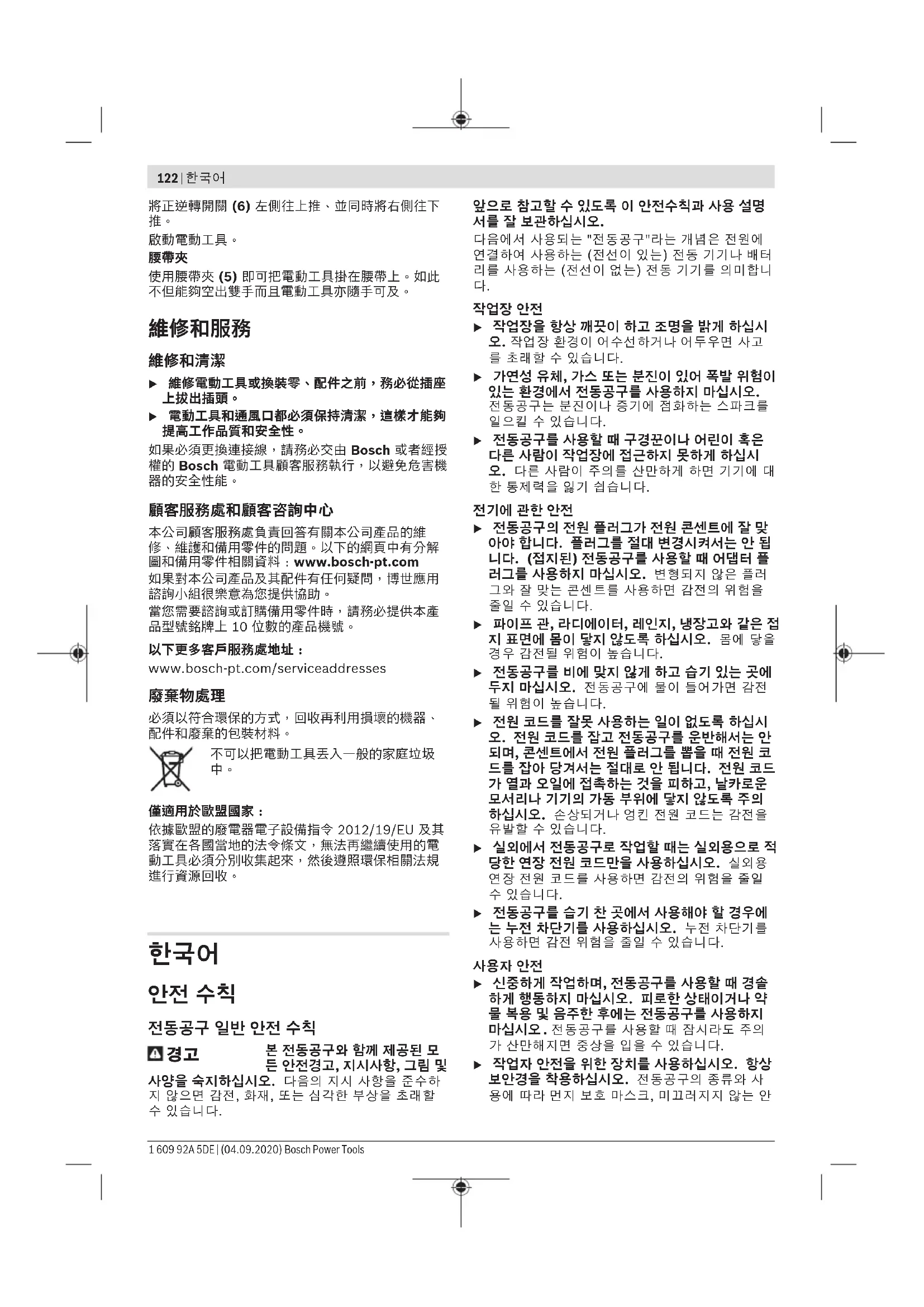 본 전동공구는 스크류를 조이거나 푸는 작업을 하는 데 사용해야 합니다. Bosch Power Tools 1 609 92A 5DE | (04.09.2020)124 | 한국어