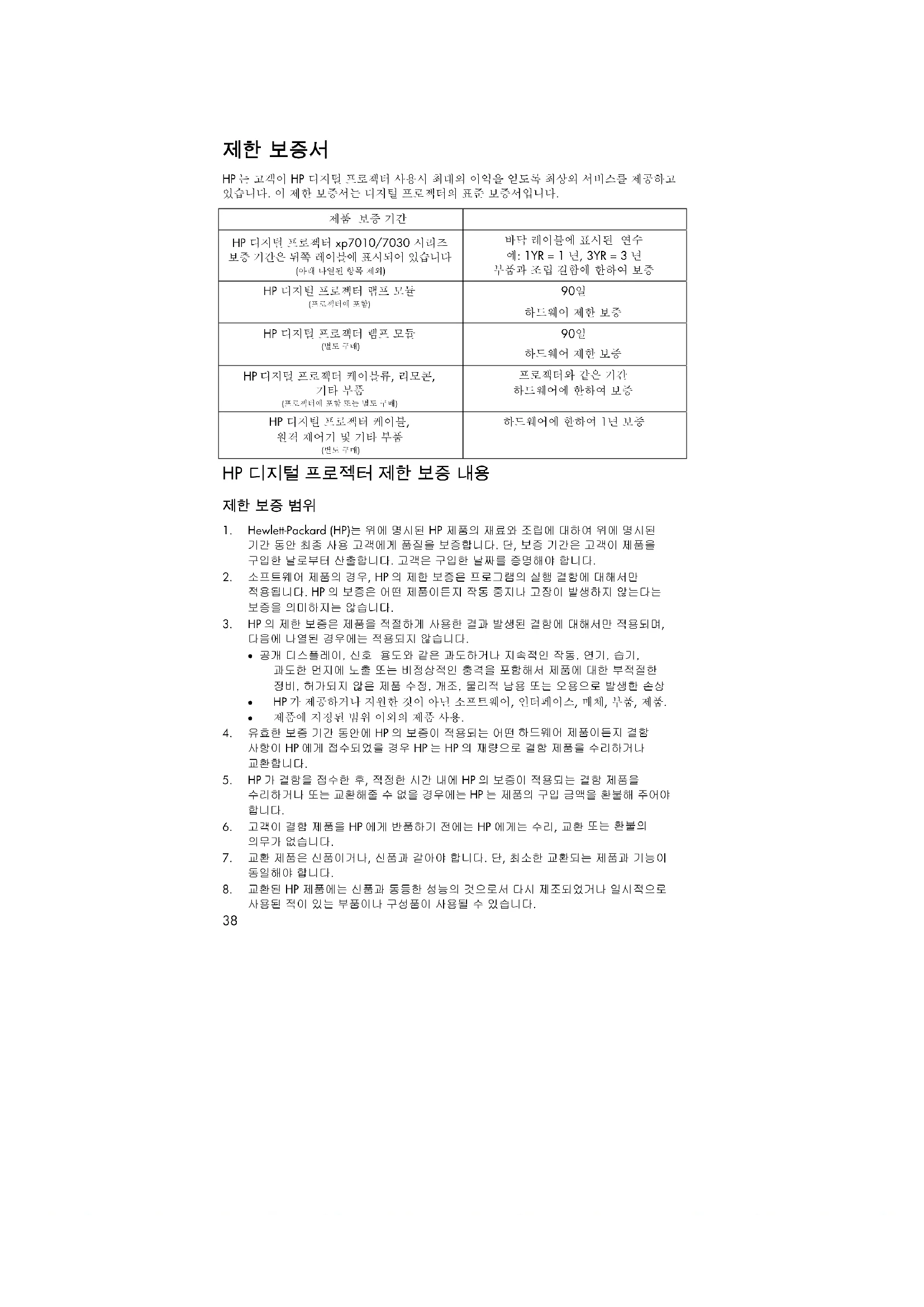HP 는 고객이 HP 디지털 프로젝터 사용시 최대의 이익을 얻도록 최상의 서비스를 제공하고 있습니다. 이 제한 보증서는 디지털 프로젝터의 표준 보증서입니다.