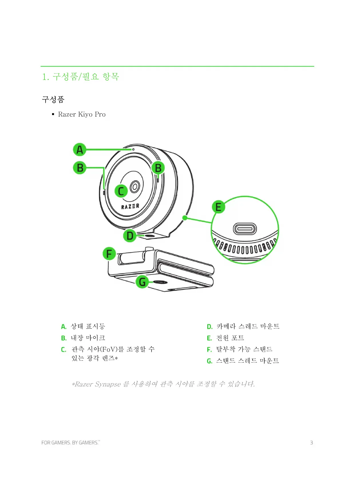 사용 설명서 Kiyo Pro RAZER