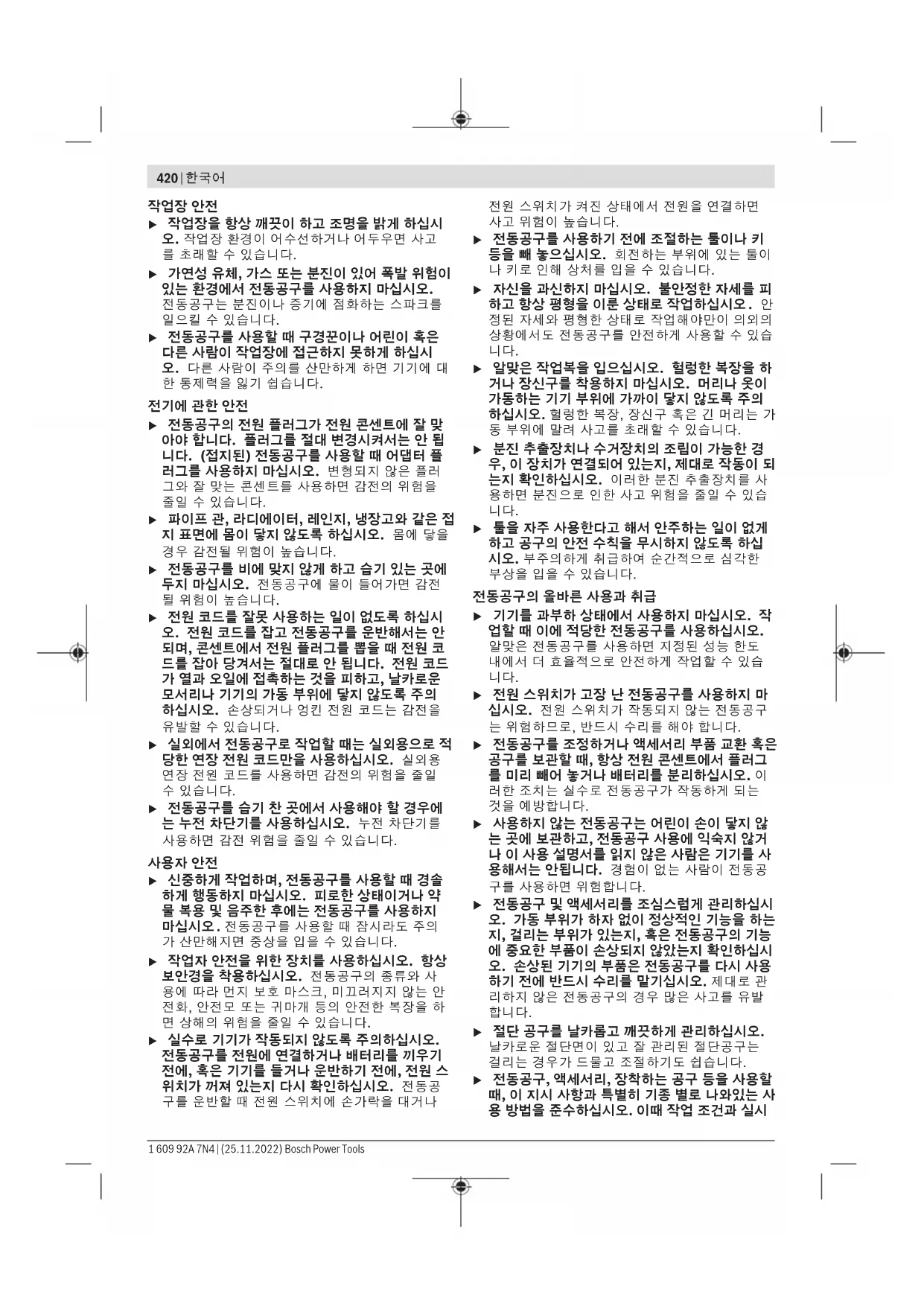 Bosch Power Tools 1 609 92A 7N4 | (25.11.2022)426 | 한국어 특히 건강에 유해한 발암성 혹은 건조한 분진을 처 리해야 할 경우에는 특수한 청소기를 사용해야 합니