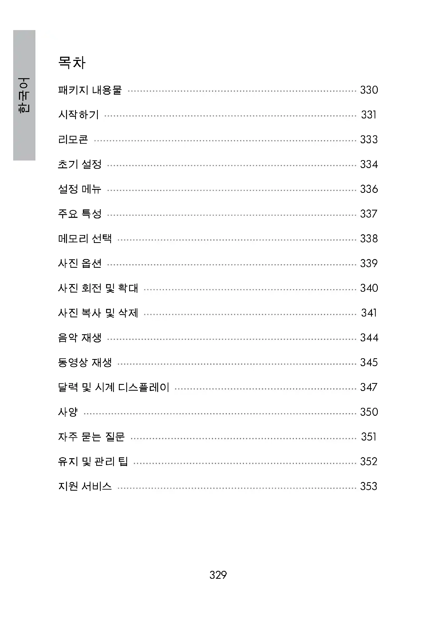 사진 검색 모드에서 버튼을 눌러 사진을 5X까지 확대할 수 있습니다. 참고: 이 버 튼을 누를 때마다 1X씩 확대되며 5X까지 확대됩니다. 5X 확대에서 이 버튼을 한 번 누르 면 원래 크기로 돌아갑니다. 사진 회전 및 확대341