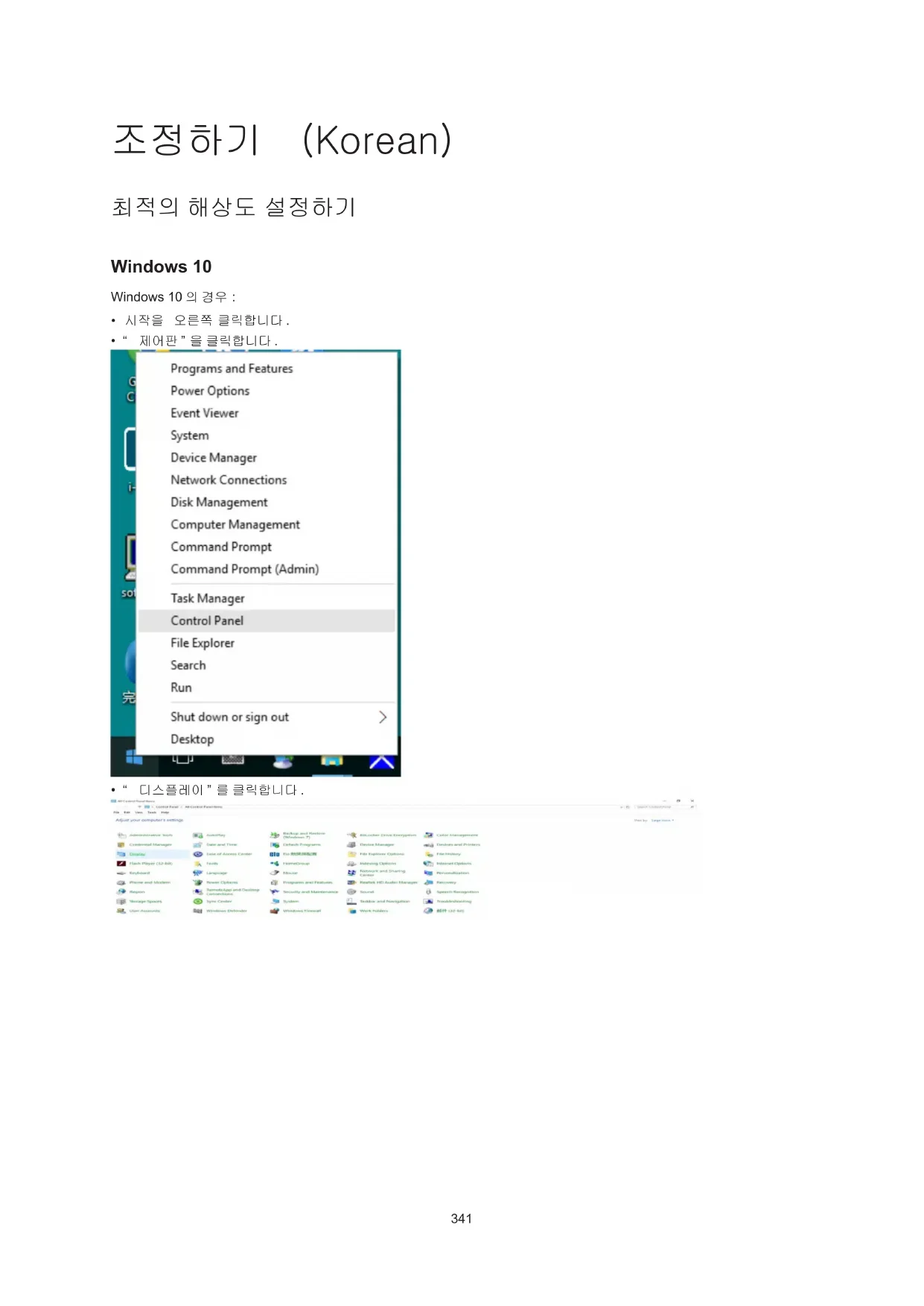 - 해상도 SLIDE-BAR( 슬라이드 바 ) 를 최적의 사전 설정 해상도로 설정합니다 .347