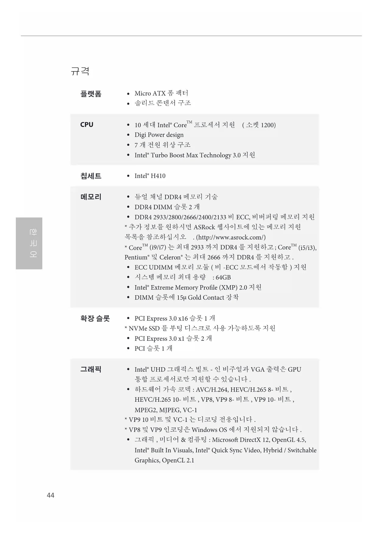 사용 설명서 H410MHDVP2 ASROCK