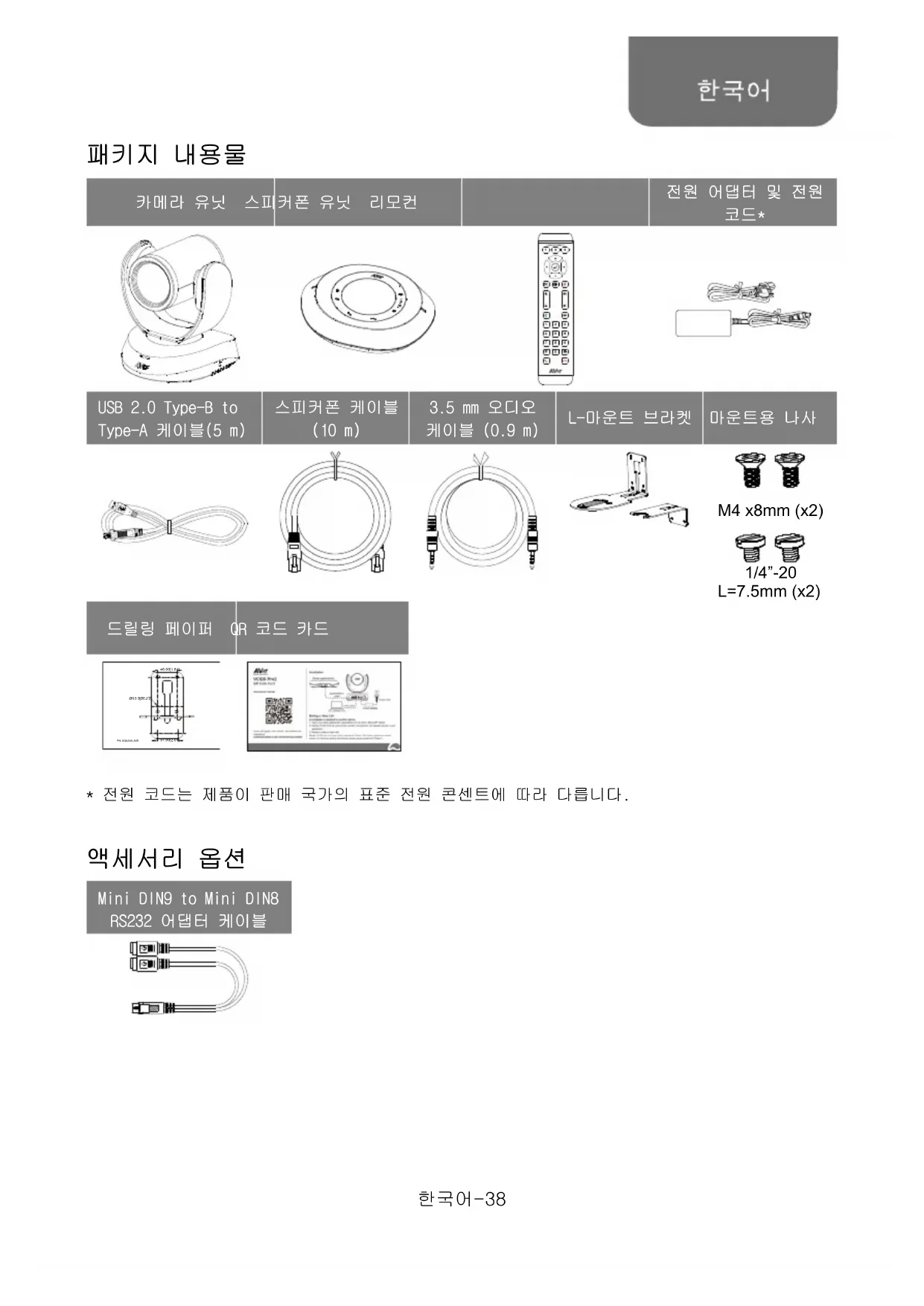 M4 x8mm (x2) 1/4”-20 L=7.5mm (x2) 드릴링 페이퍼 QR 코드 카드