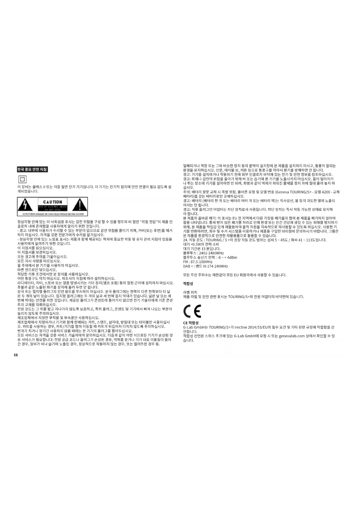 적합성 선언은 스위스 추크에 있는 G-Lab GmbH에 요청 시 또는 genevalab.com 상에서 확인할 수 있 습니다.59