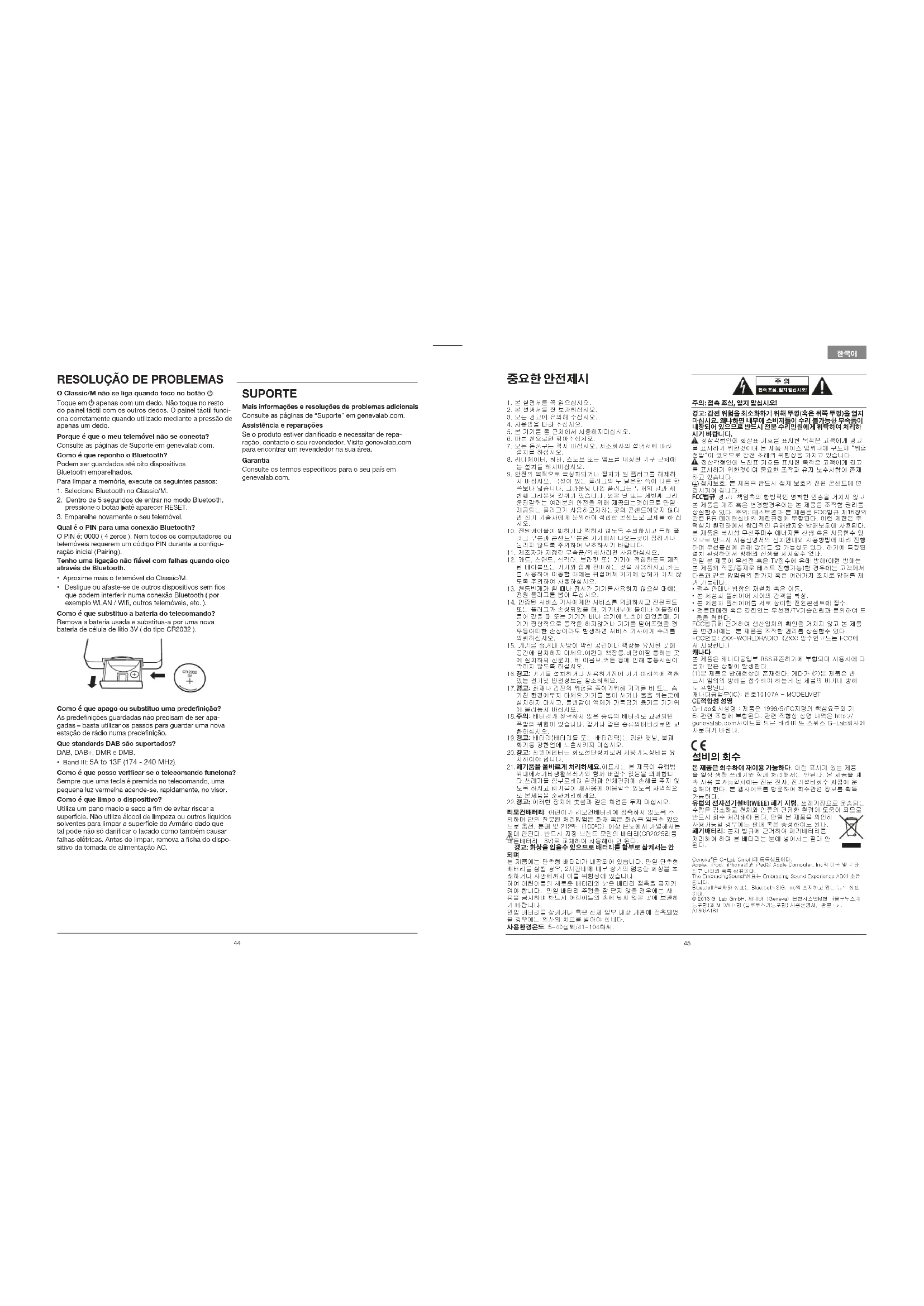 Classic/M 에서 재생됩니다. 다른 기기와 휴대폰 블루투스 페어링 사용설명 www.genevalab.com,사이트를 방문하여 “서포트” 를