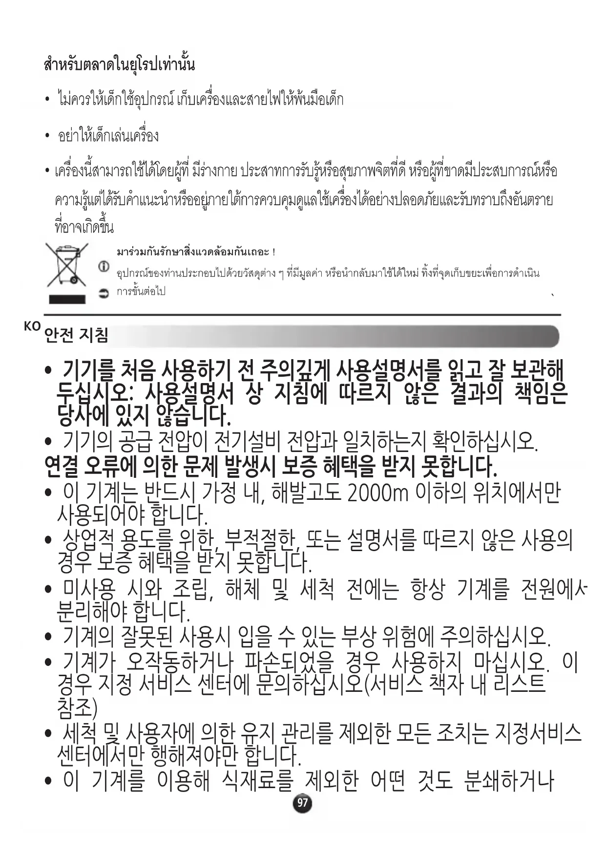 - 이 기계는 반드시 가정 내, 해발고도 2000m 이하의 위치에서만