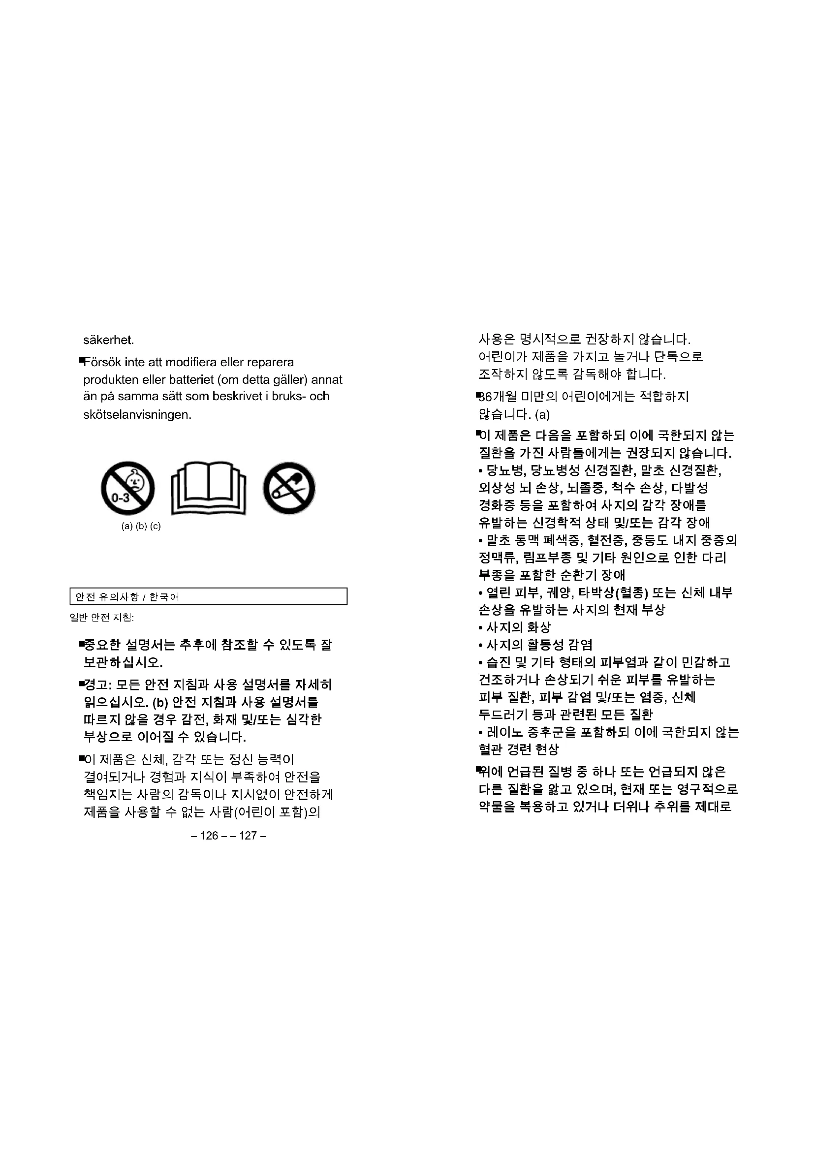 Stick inte in nålar eller liknande! (c)– 126 – – 127 – 사용은 명시적으로 권장하지 않습니다. 어린이가 제품을 가지고 놀거나 단독으로 조작하지 않도록 감독해야 합니다.