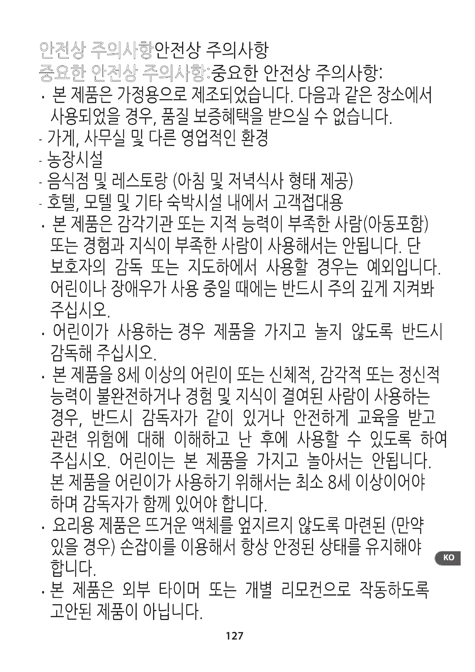 - Cet appareil ne doit pas être utilisé par des enfants âgés de 0 à 8 ans. Cet appareil peut être utilisé par des enfants âgés de 8 ans et plus s'ils sont surveillés en permanence. Cet appareil peut être utilisé par des personnes ayant des capacités physiques, sensorielles ou mentales réduites ou dénuées d'expérience ou de connaissance, s'ils (si elles) sont correctement surveillés(e)s.