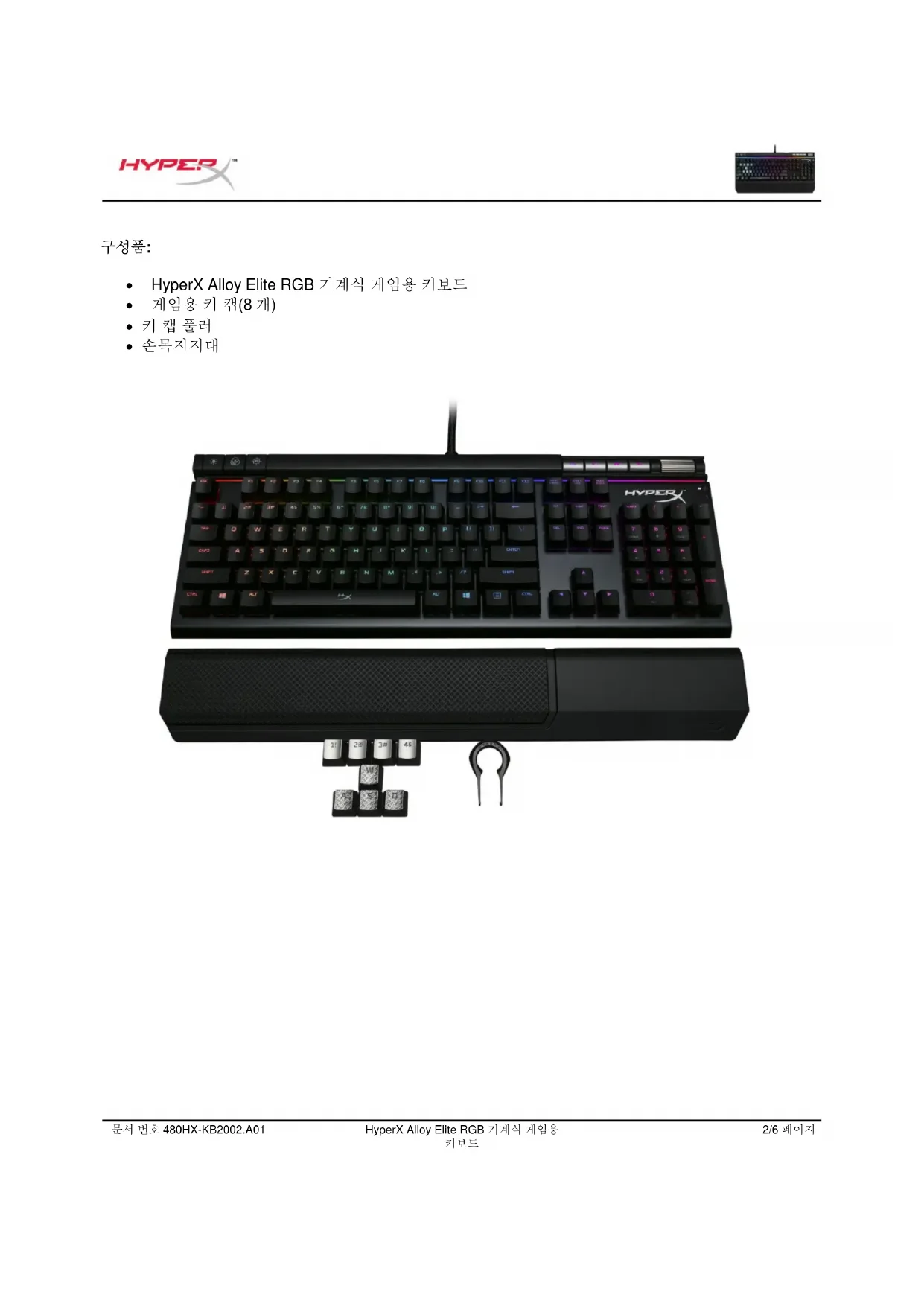 기기 설명서 다운로드 키보드 무료 PDF 형식! 매뉴얼 찾기 Hyperx Alloy Elite - KINGSTON 전자 기기를 다시 손에 넣으세요. 이 페이지에는 기기 사용에 필요한 모든 문서가 게시되어 있습니다. Hyperx Alloy Elite 브랜드 KINGSTON.