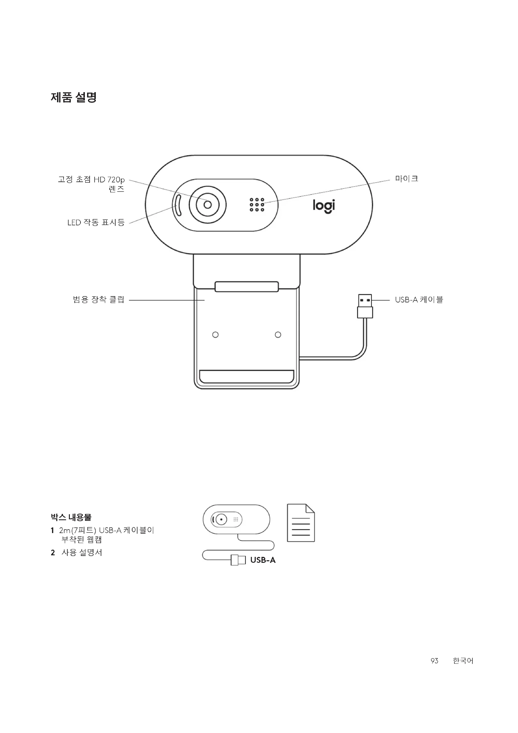 2 사용 설명서 93 한국어웹캠 설정 1 컴퓨터 위, 노트북, 모니터 등 원하는 위치 및 각도에