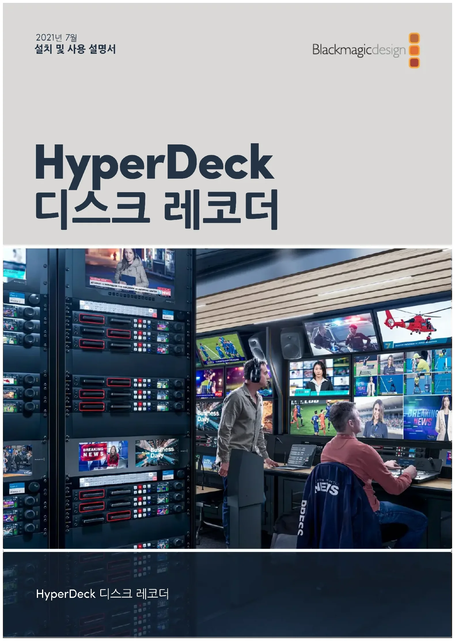 HyperDeck 디스크 레코더의 사용 준비와 모든 컨트롤 및 기능 파악에 필요한 모든 정보가 포함되어 있습니다. HyperDeck Studio HD Mini HyperDeck Studio HD Plus HyperDeck Studio HD Pro와 HyperDeck Studio 4K Pro