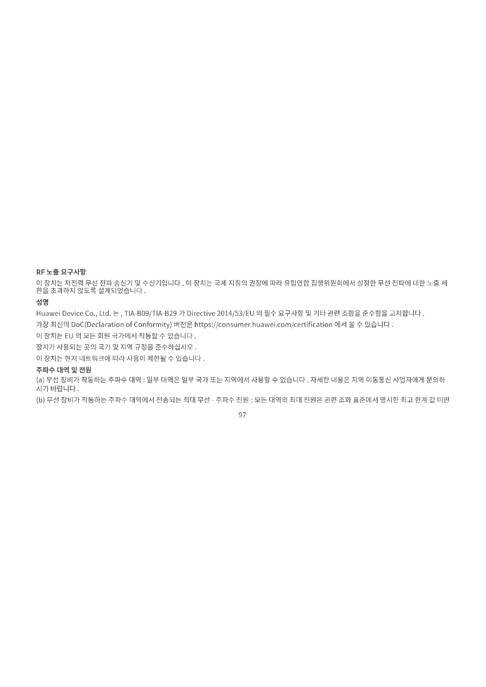 Par la presente, Huawei Device Co., Ltd. declare que cet appeareil TIA-B09/TIA-B29 est conforme aux exigences fondamentales et aux autres dispositions pertinentes de la directive 2014/53/UE.