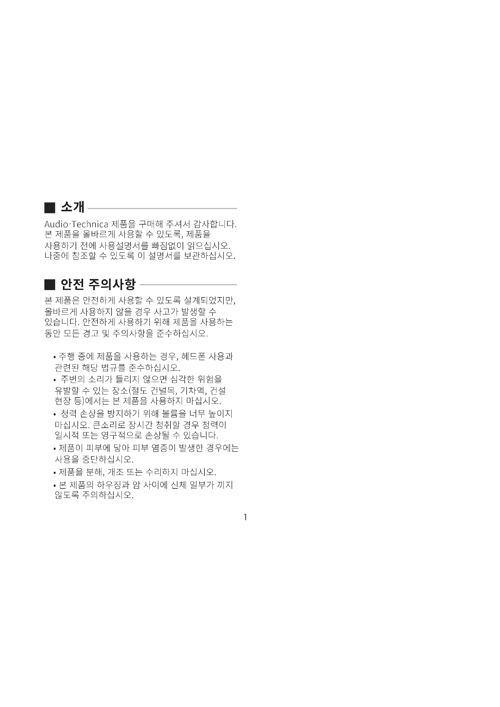 Audio-Technica 제품을 구매해 주셔서 감사합니다. 본 제품을 올바르게 사용할 수 있도록, 제품을 사용하기 전에 사용설명서를 빠짐없이 읽으십시오. 나중에 참조할 수 있도록 이 설명서를 보관하십시오.
