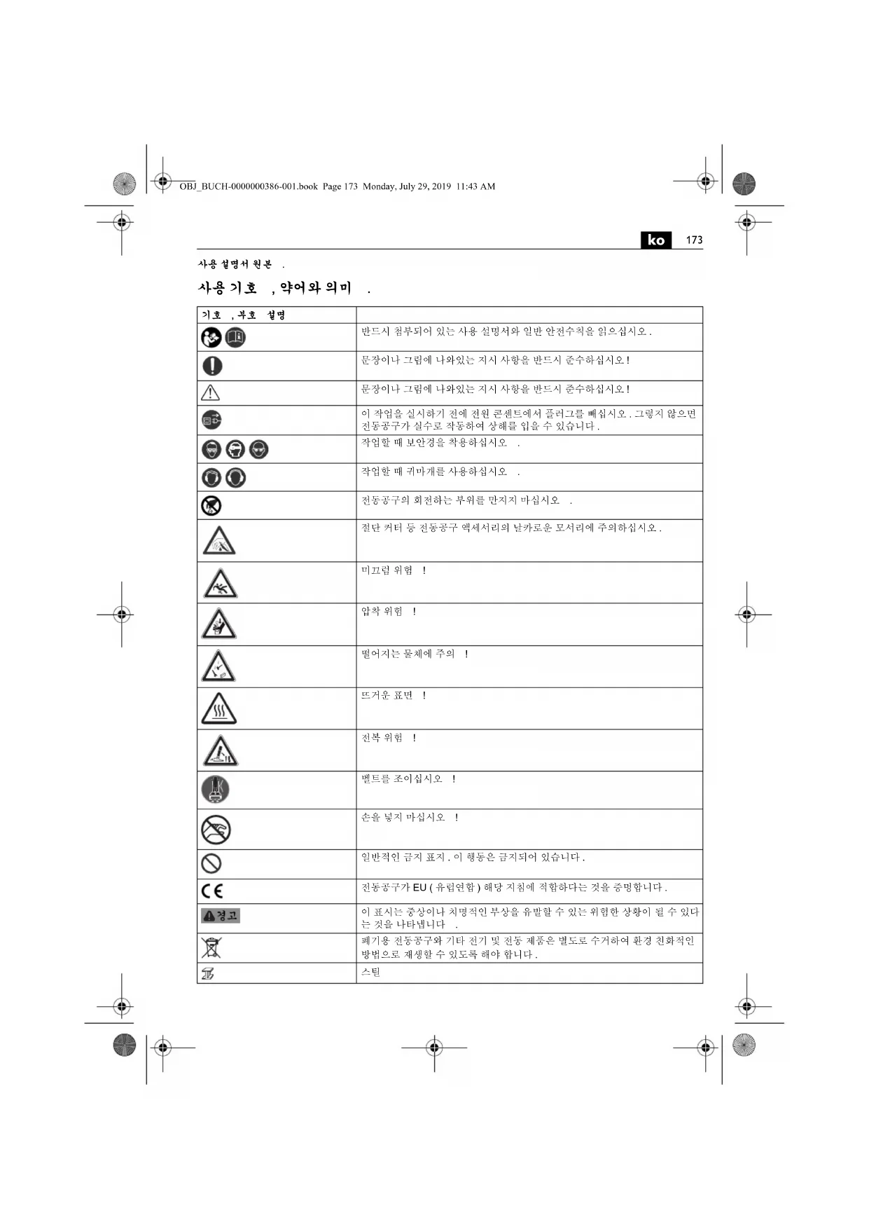 사용 설명서 원본 . 사용 기호 , 약어와 의미 .