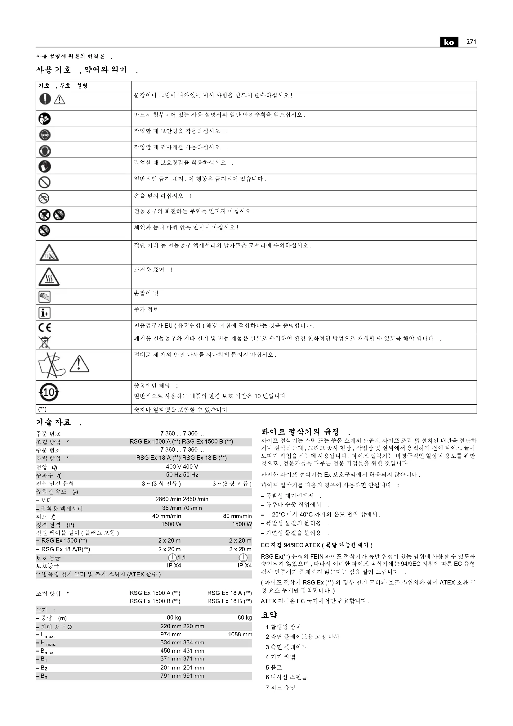 사용 설명서 RSG EX18b Fein