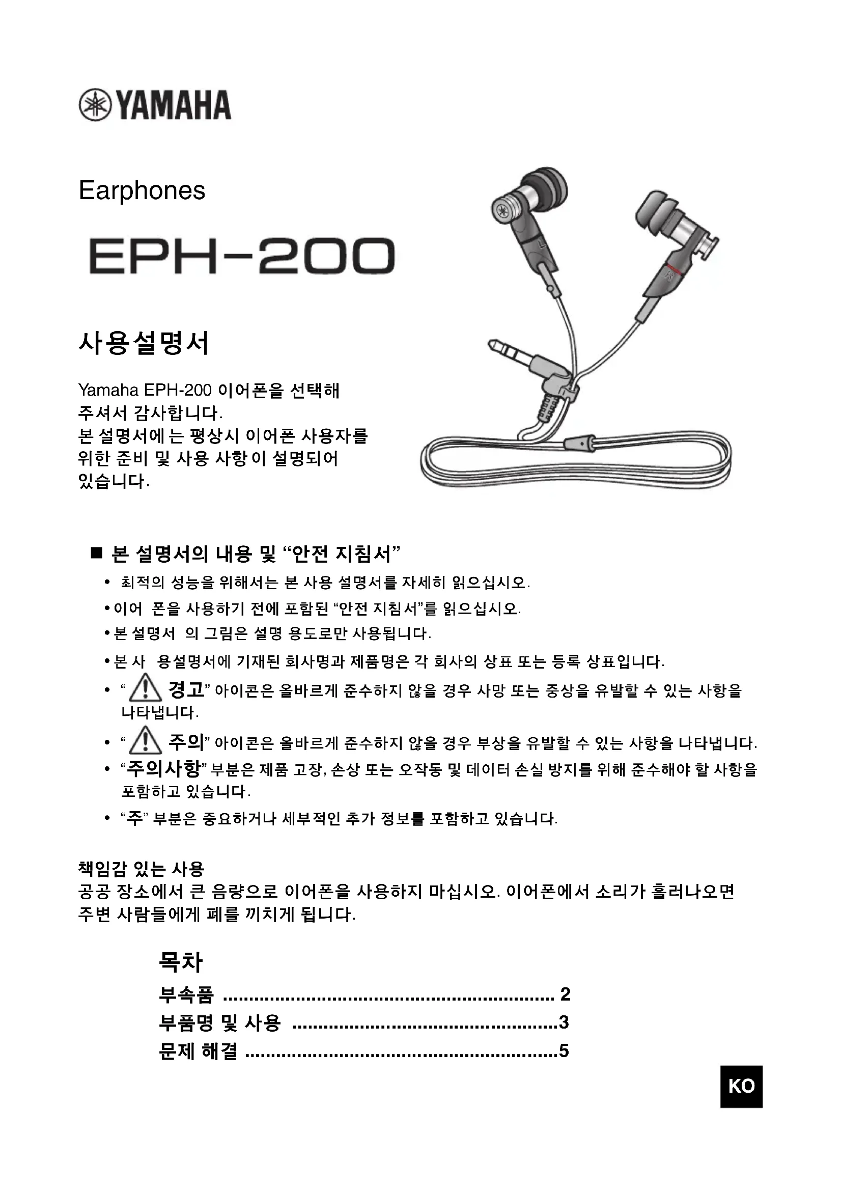 EPH200 - 이어폰 YAMAHA - 무료 사용 설명서