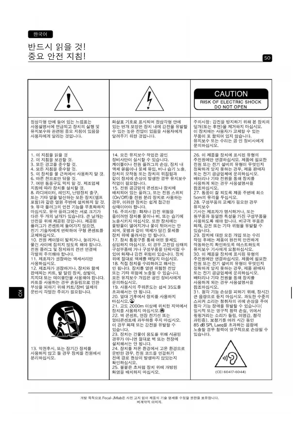 개발 목적으로 Focal-JMlab은 사전 고지 없이 제품의 기술 명세를 수정할 권한을 보유합니다.