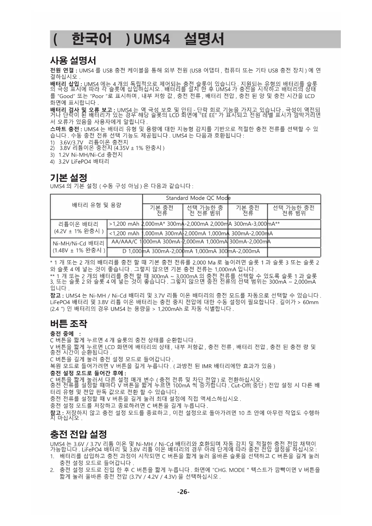 짧게 눌러 올바른 충전 전압 (3.7V / 4.2V / 4.3V) 을 선택하십시오 .-27- ( 한국어 )UMS4 설명서