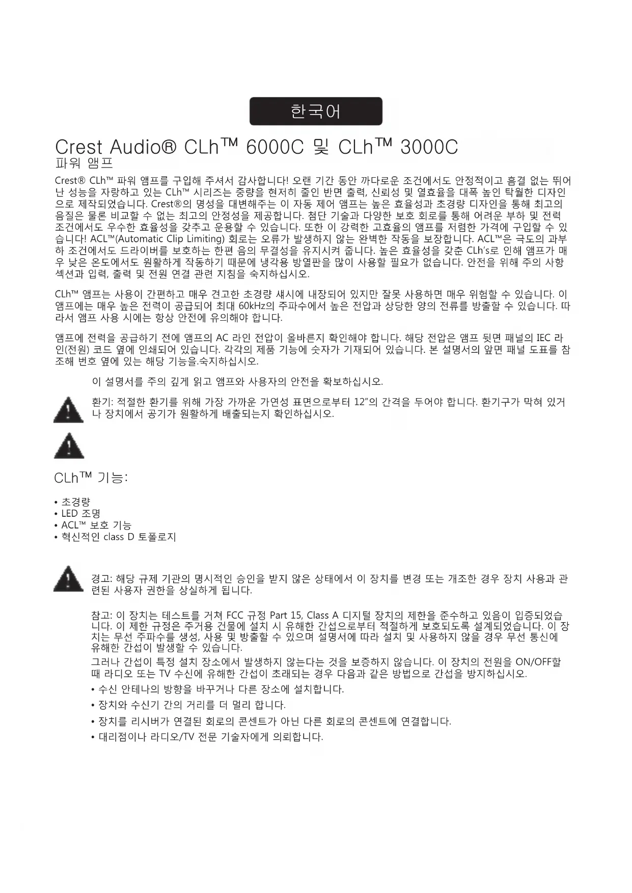 사용 설명서 CLh 6000C CREST AUDIO