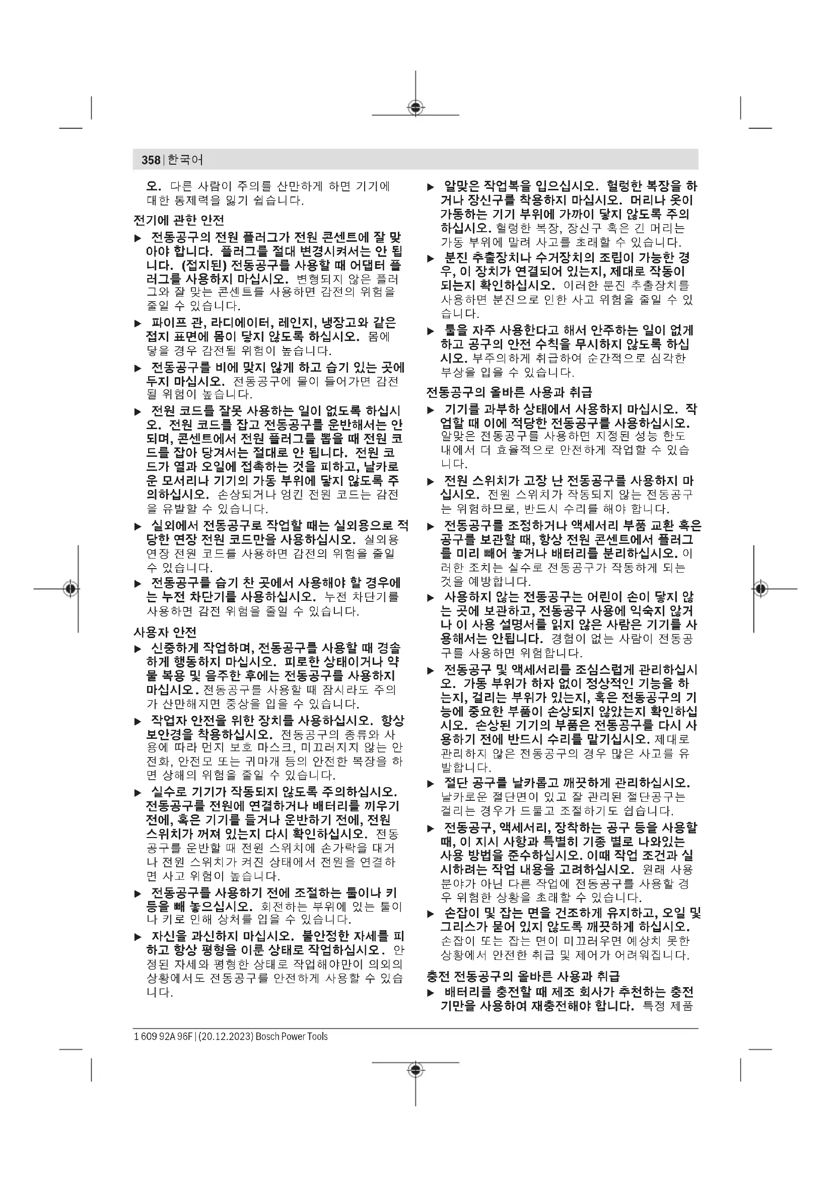 u 해당 무선설비는 전파혼신 가능성이 있으므로 인 명안전 과 관련된 서비스는 할 수 없습니다 . Bosch Power Tools 1 609 92A 96F | (20.12.2023)360 | 한국어 u 주의! 전동공구의