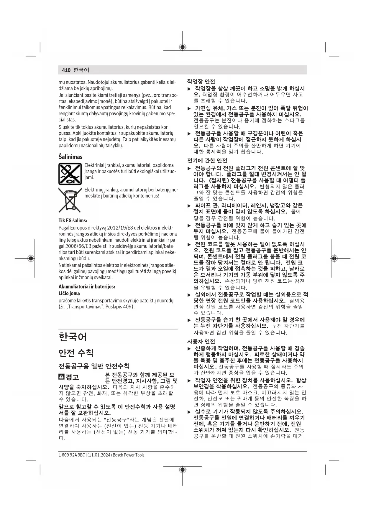 u 전동공구 수리는 반드시 전문 인력에게 맡기고 , 수리 정비 시 보쉬 순정 부품만을 사용하십시오. 그렇게 함으로써 기기의 안전성을 오래 유지할