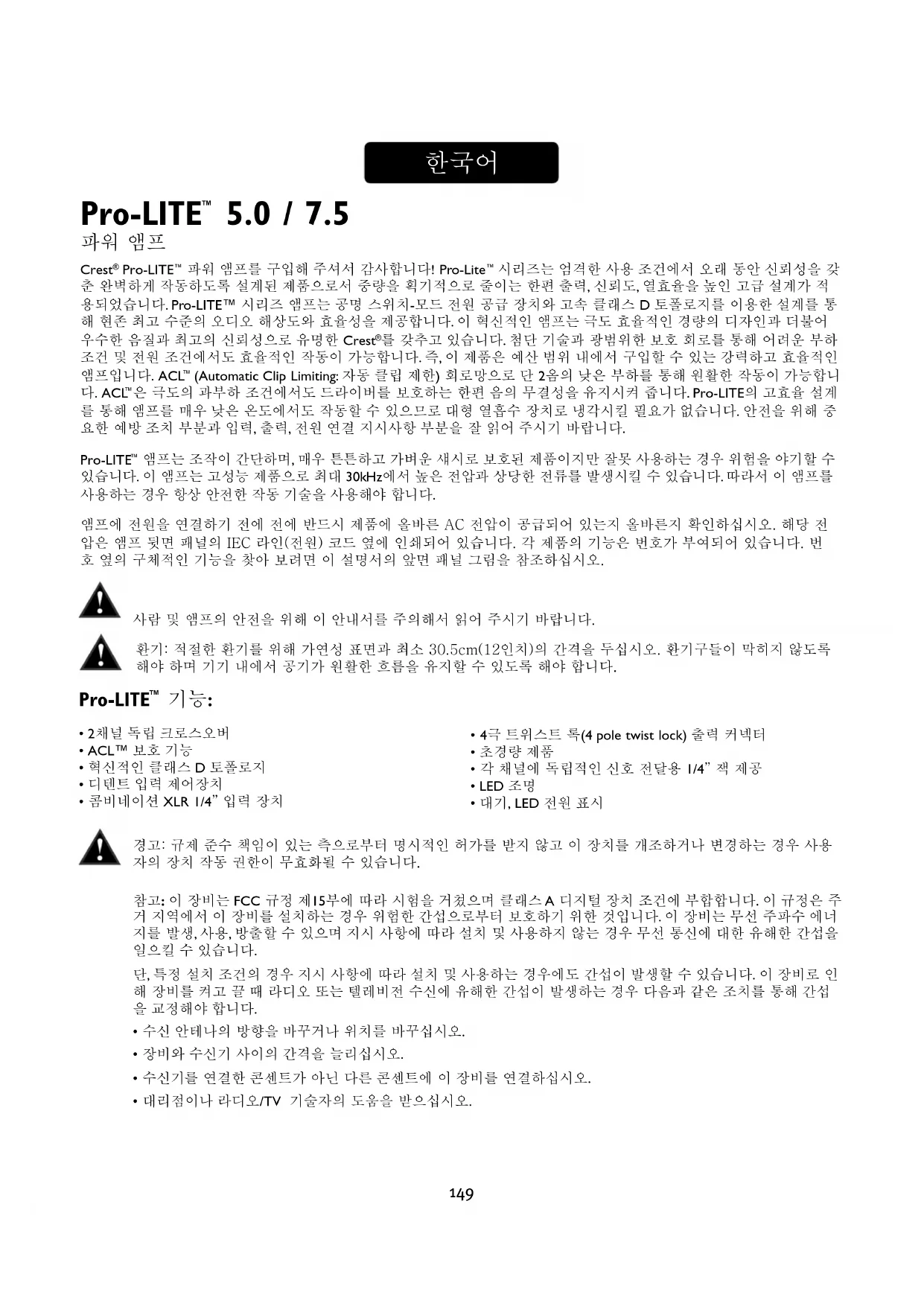 사용 설명서 ProLITE 5.0 CREST AUDIO