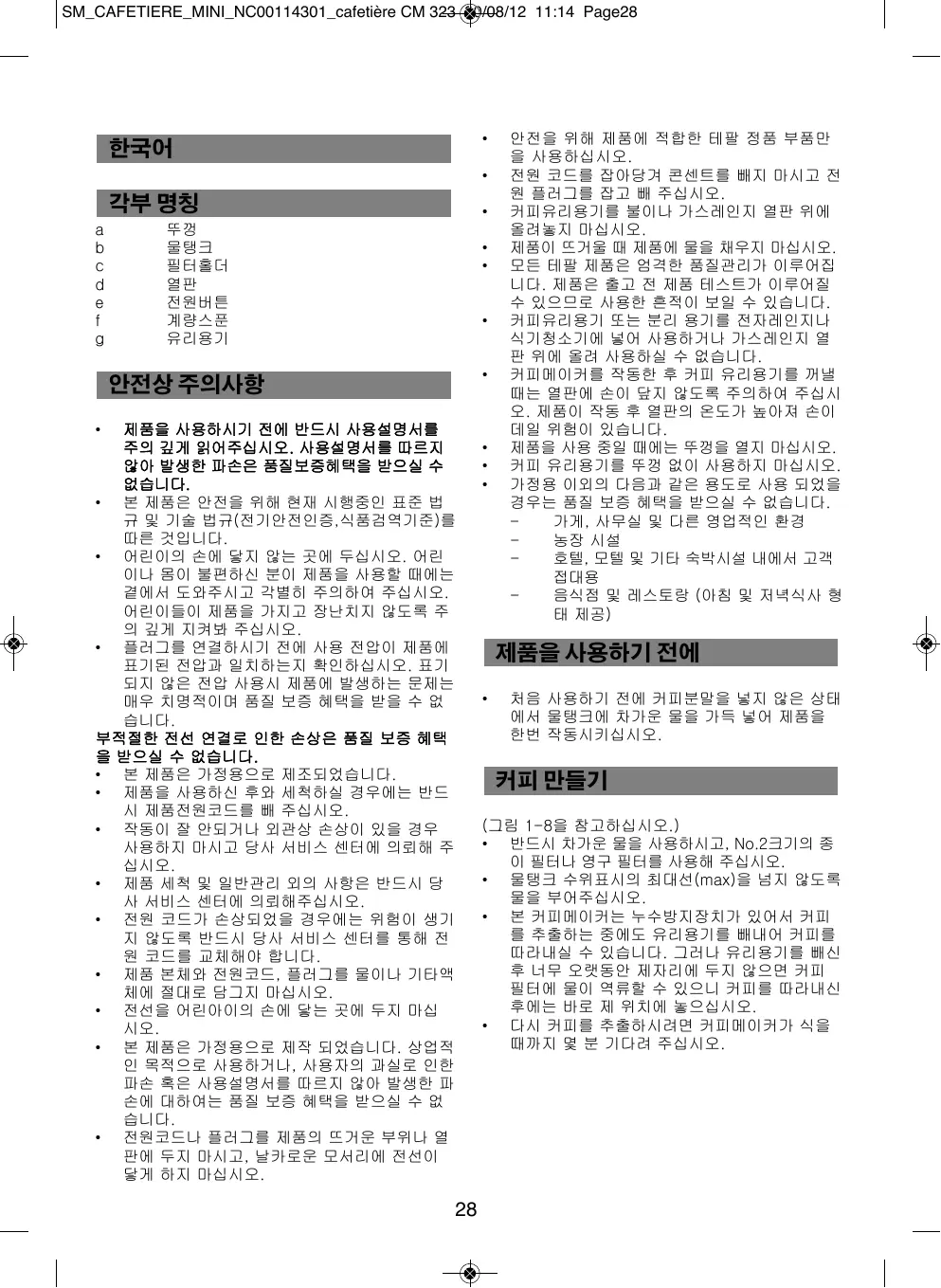 SM_CAFETIERE_MINI_NC00114301_cafetière CM 323 30/08/12 11:14 Page2