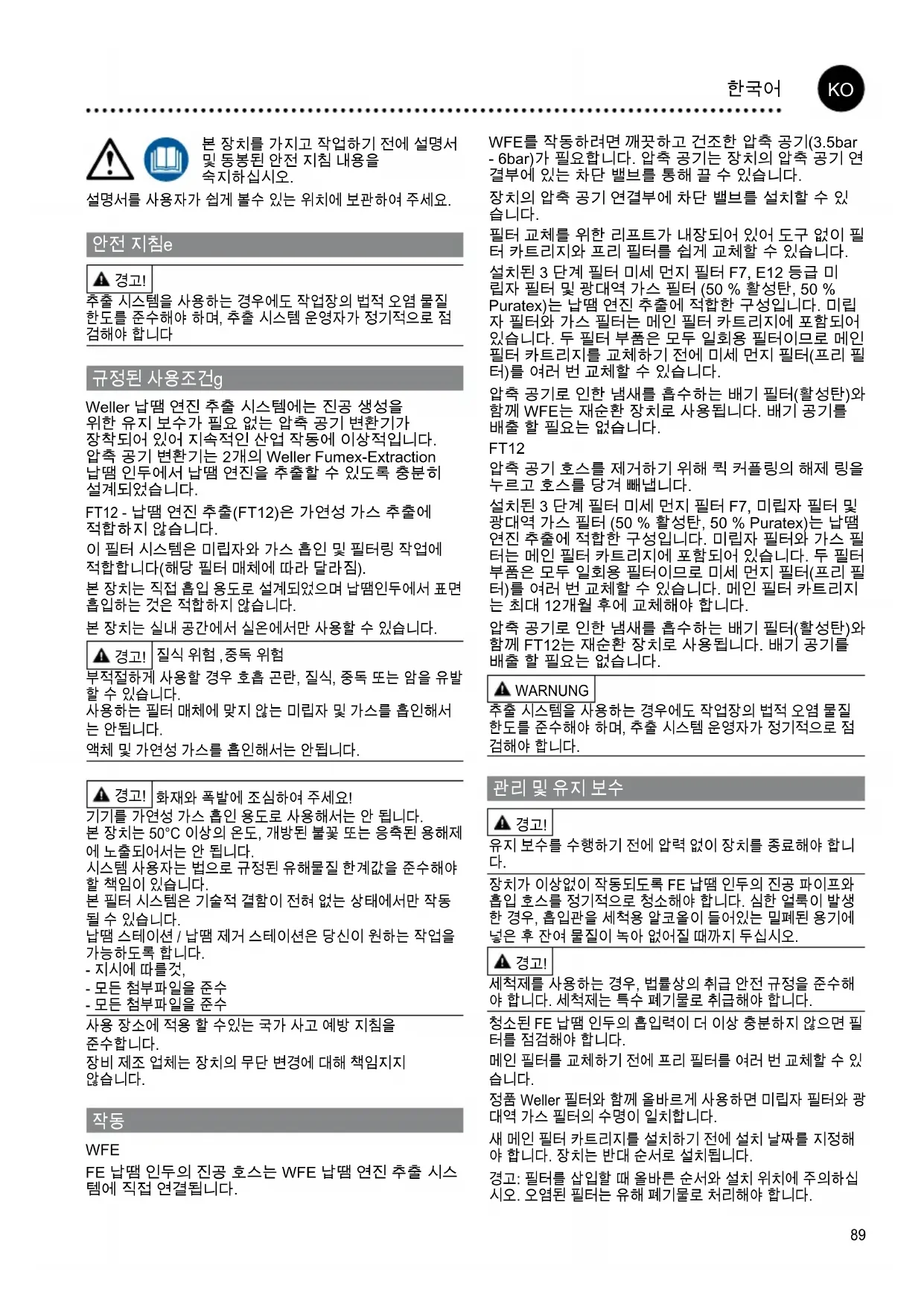 한국어90 반드시 Weller사의 트레이닝을 받은 전문수리 인원이 수리를 진행 하여야 합니다. 교환용 부품은 정품만을 사용할 것