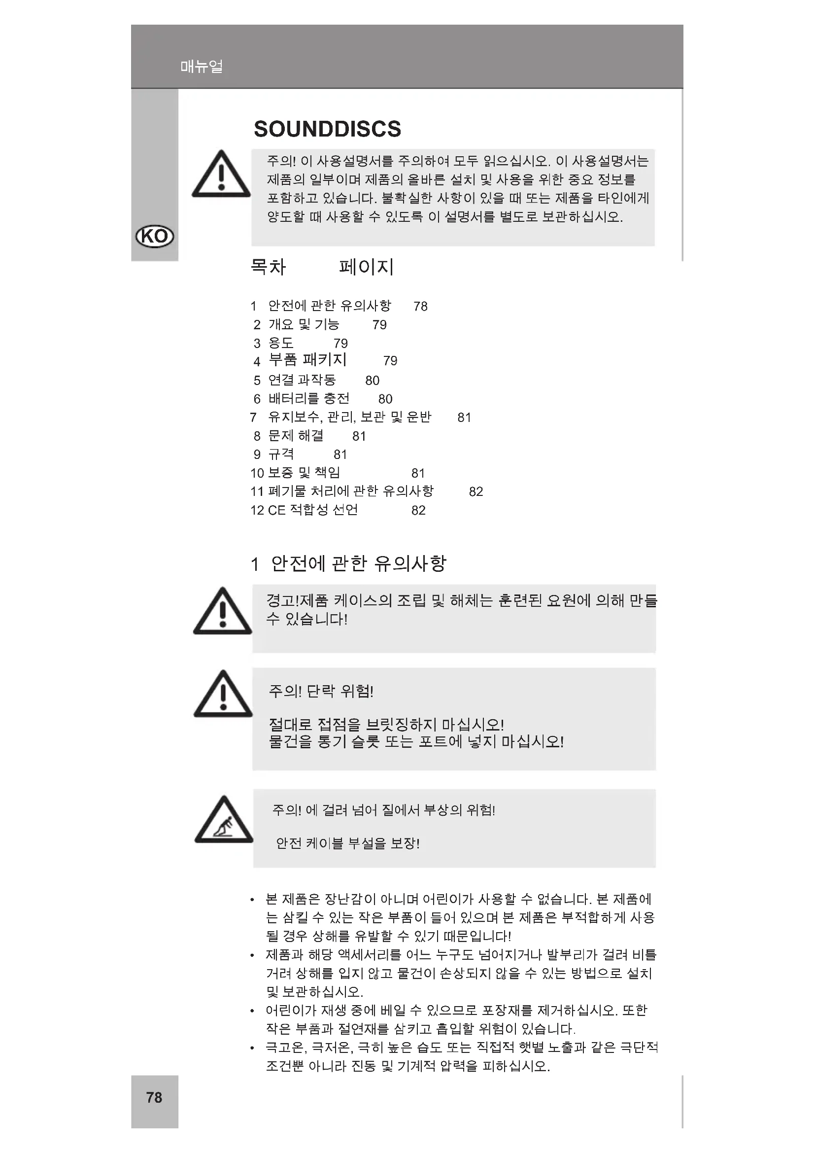 주의! 이 사용설명서를 주의하여 모두 읽으십시오. 이 사용설명서는 제품의 일부이며 제품의 올바른 설치 및 사용을 위한 중요 정보를 포함하고 있습니다. 불확실한 사항이 있을 때 또는 제품을 타인에게 양도할 때 사용할 수 있도록 이 설명서를 별도로 보관하십시오. SoUNddISCS