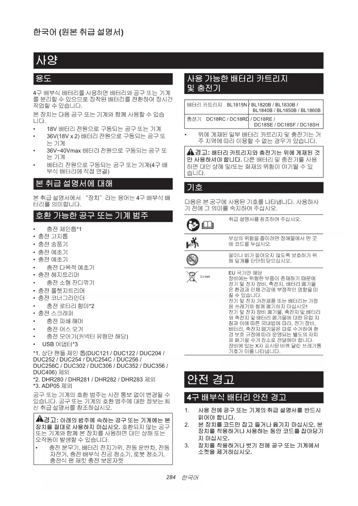 4구 배부식 배터리 취급 설명서 284