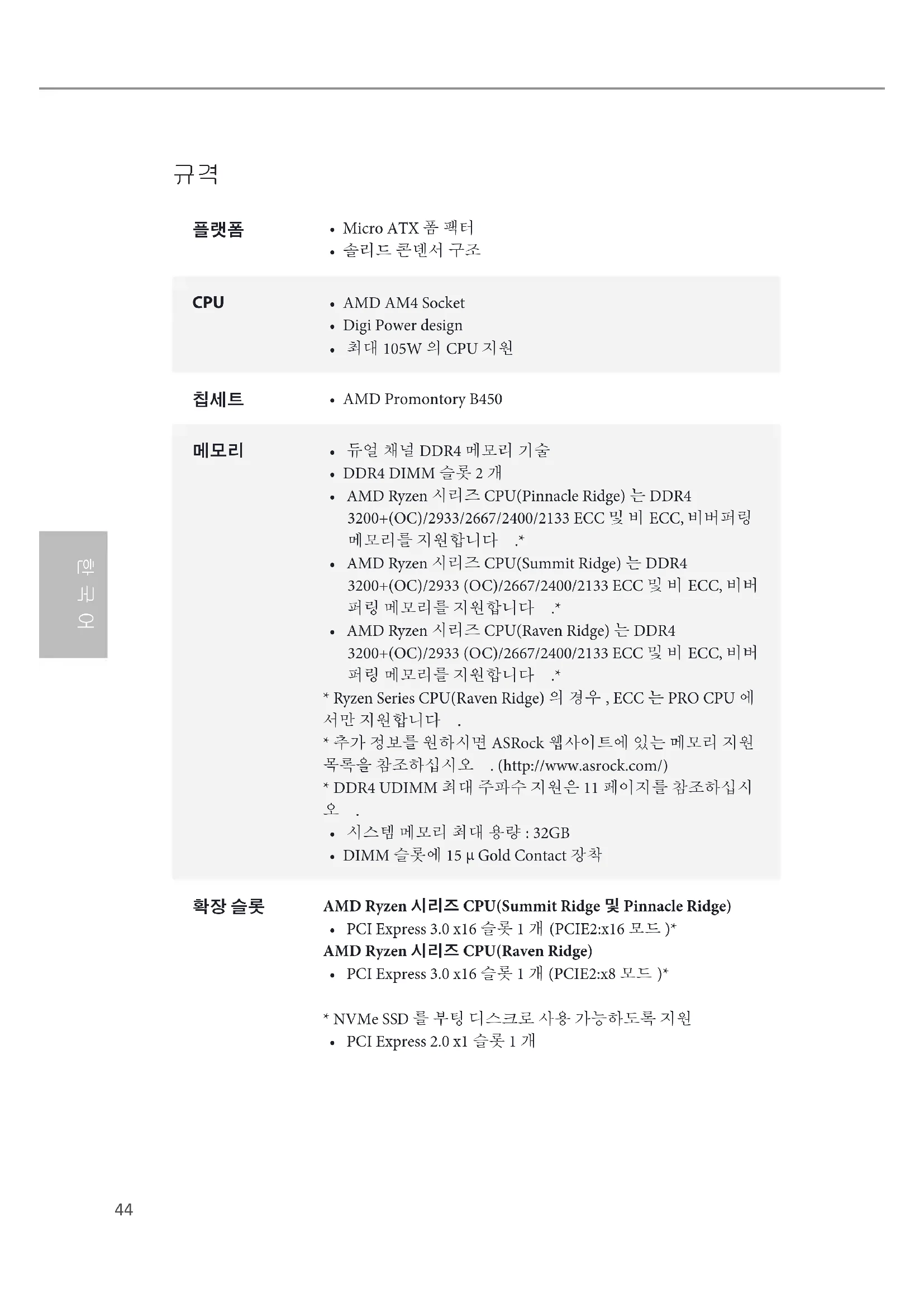 - AMD Ryzen 시리즈 CPU(Pinnacle Ridge) 는 DDR4