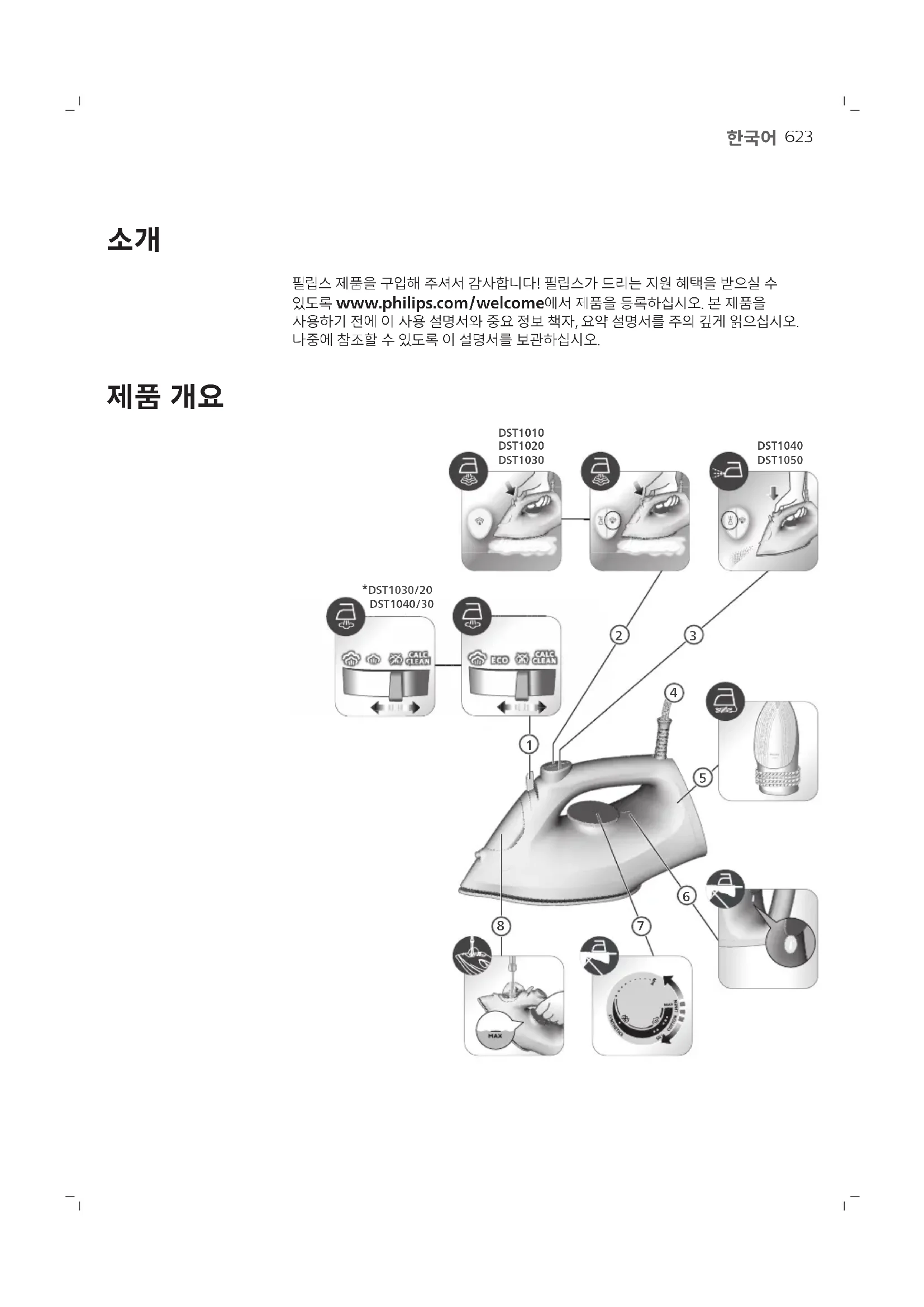 필립스 제품을 구입해 주셔서 감사합니다! 필립스가 드리는 지원 혜택을 받으실 수 있도록 www.philips.com/welcome에서 제품을 등록하십시오. 본 제품을 사용하기 전에 이 사용 설명서와 중요 정보 책자, 요약 설명서를 주의 깊게 읽으십시오. 나중에 참조할 수 있도록 이 설명서를 보관하십시오.